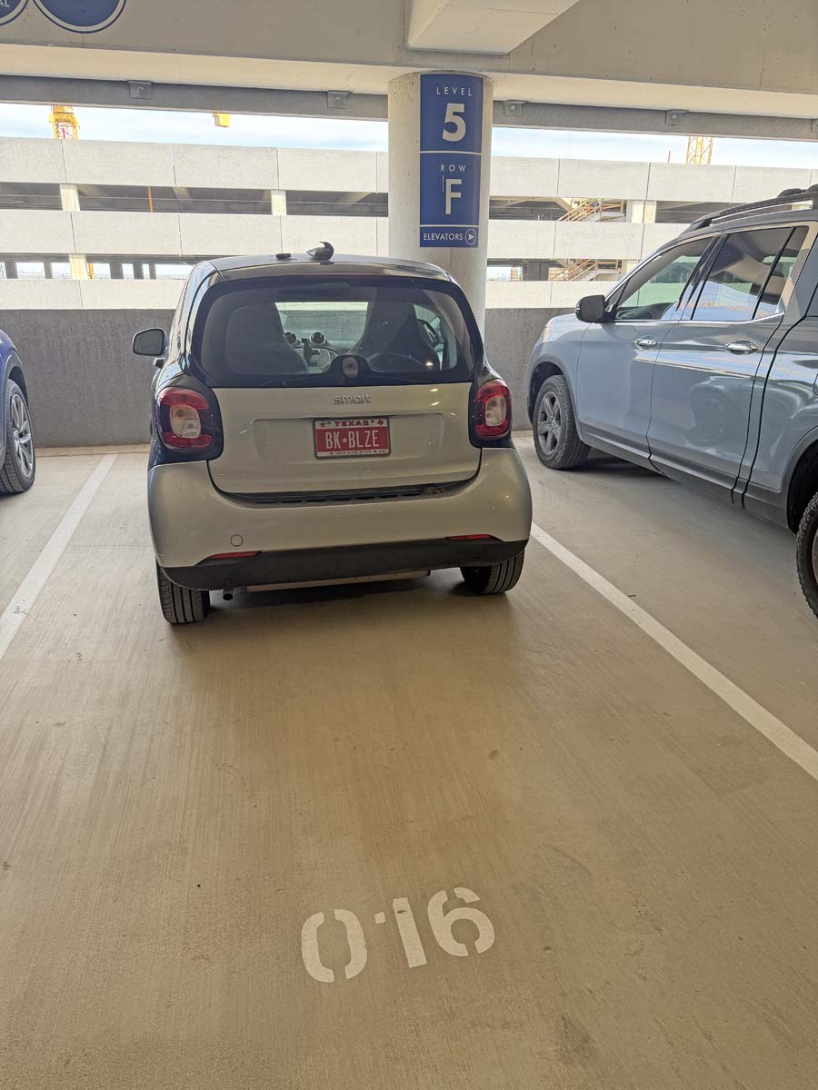 I start most of my adventures parking at the Austin Airport. Below is a picture of my car to remember where I parked. Yes, I am getting old.