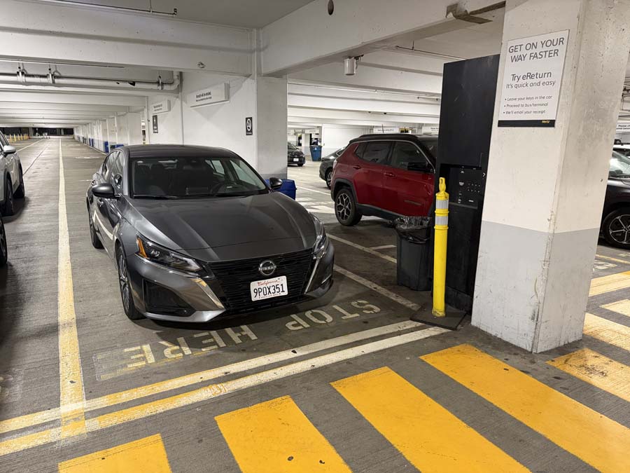 Later that night I returned my Hertz rental car at SFO. Part of this quick trip was to scout out how SFO Grand Hyatt, SFO Airtrain, and other things worked together. Notice the sign on the post on the right that says "Try eReturn". It seemed to work, even though there were conflicting signs on what to do to return your rental car at midnight. I just left they keys on the dash and walked away since there were zero Hertz employees around at midnight.