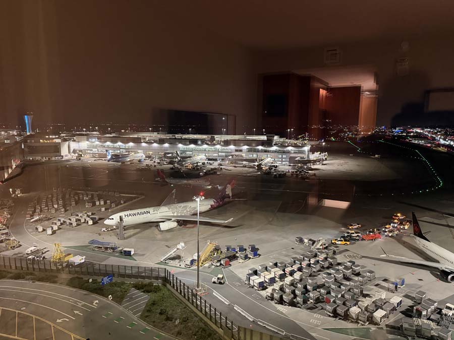 I paid a little extra to face the runway, LOL. This is a photo from my room on the 12th floor, at midnight.