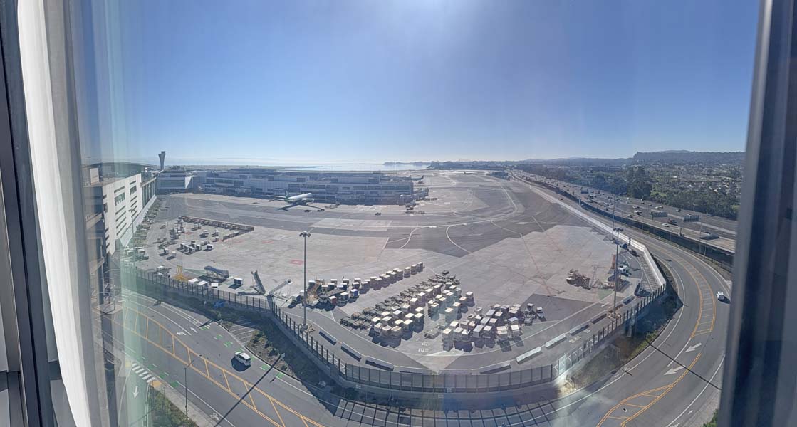 Below is a panorama I took from my hotel room window which gives the best impression of what is going on. That is Highway 101 on the right.