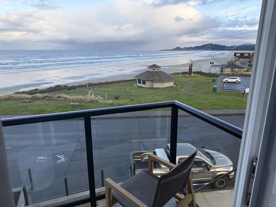 We met up with Karl, Tam, and Brady at Karl/Tam's condo which is at 1306 S Pine St, Newport, Oregon. Picture below of their condo in Newport. What the REVERSE direction shows is views of the Newport Harbor, the docks with boats, and sea lions (hanging out on the docks). Click on the address link earlier in this paragraph to use Google Streetview to look around.