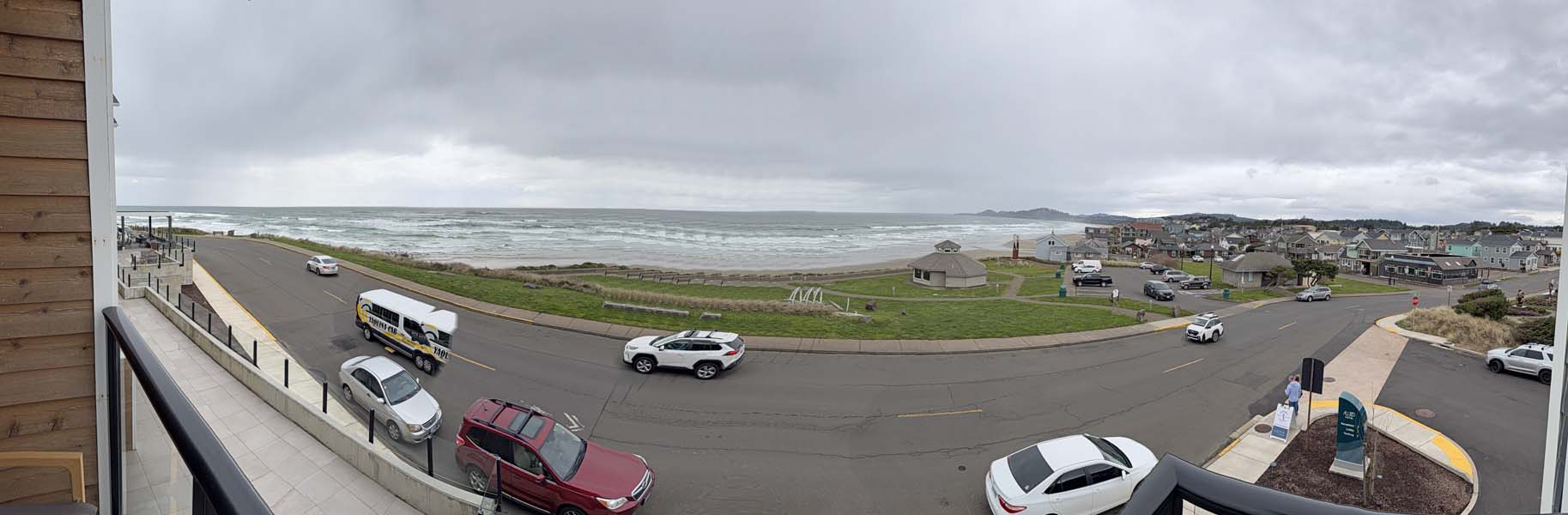 Below is a panorama taken from the same spot. There is some odd "stitching" artifacts in the cars and waves, just ignore those to get the vibe of the view.