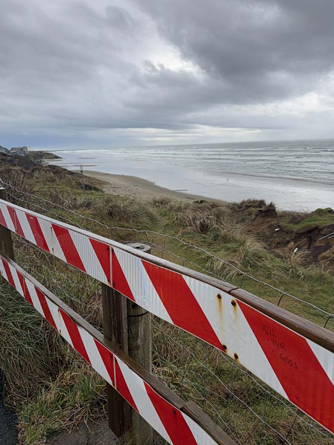 The 3 pictures below deserve some explanation, but it's boring. :-) Growing up, I played a lot at the location pictured below called "Jump Off Joe". I have been here hundreds of times throughout my 58 year life. When I was 15 years old, a land developer tried to build a multi-story condo here, but nobody ever moved in. The condo started collapsing into the ocean before it was finished. What remained for the next 44 years is the foundation of that ill fated development attempt. I like to visit and document this every few years, like here (2006), and here (2016), and I took one of my favorite pictures of Katherine in 2016 standing here. Now I am in 2026 and there is a HUGE erosion that occurred, see below... the first picture is facing south.