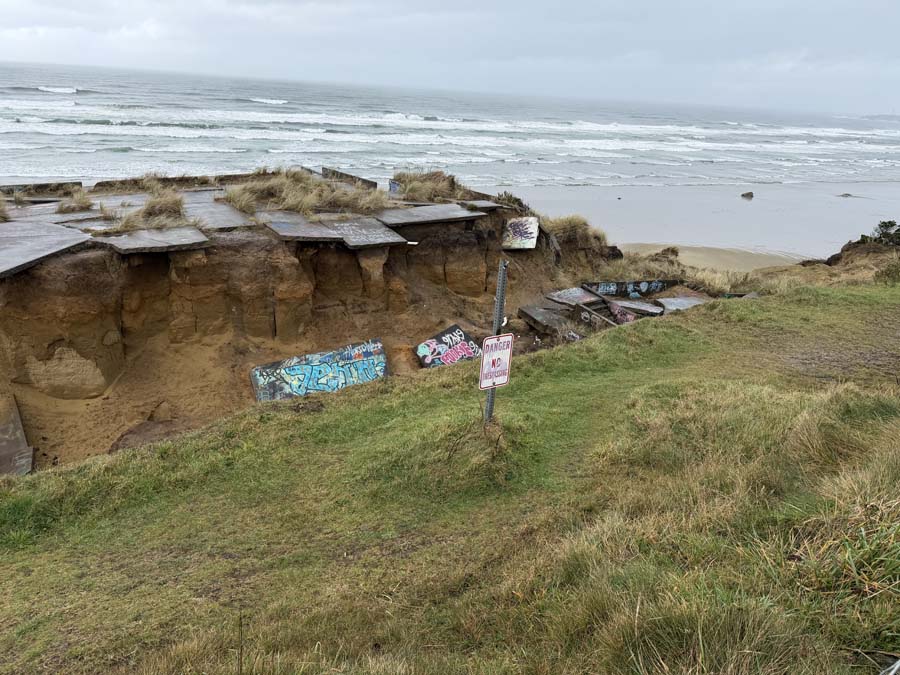 The picture below is the main erosion that is totally new to me. After 44 years, the ill fated condo parking lot is no longer flat and connected to the "mainland". A large crevasse has opened up!
