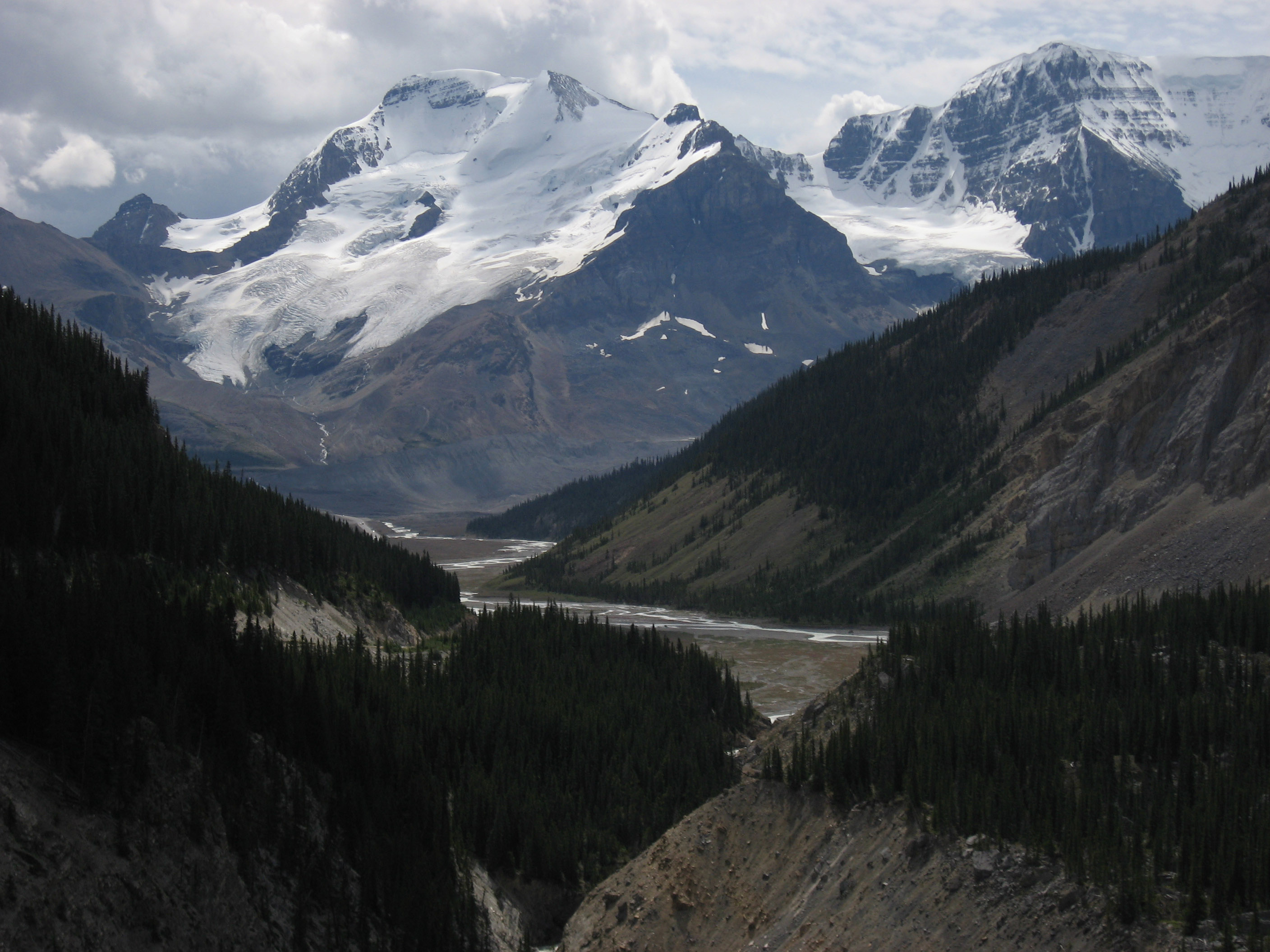 And to the right of Mt Kitchener a little there are glaciers and snow.