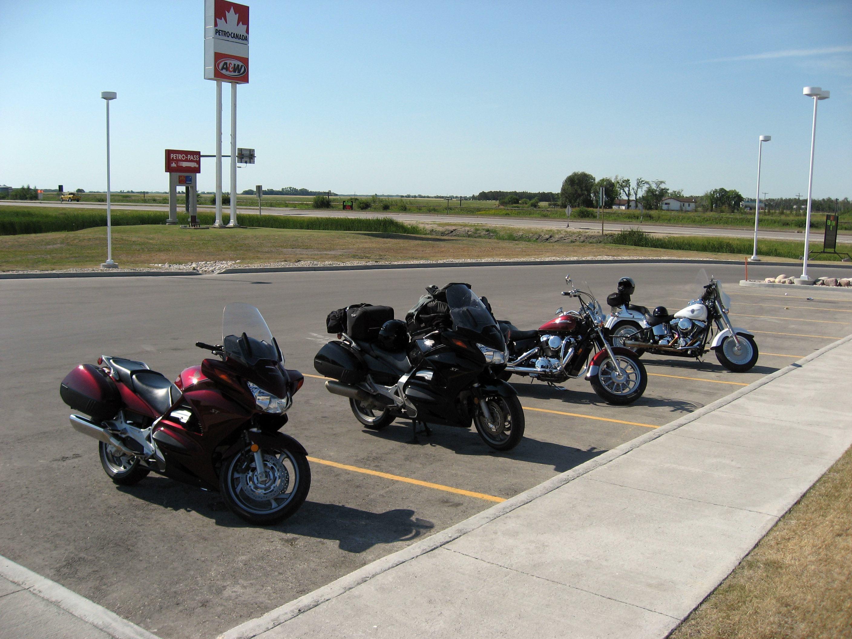 I stopped for breakfast, and 5 minutes later 3 other motorcycles pulled up in formation around my bike. They found me in the restaurant and we talked about our motorcycles and the routes to take (they were locals). On this trip I've found the Canadians in general, and ESPECIALLY the motorcyclists to have been an extremely friendly and relaxed bunch. Always helpful, always saying hello at gas stations and restaurants.