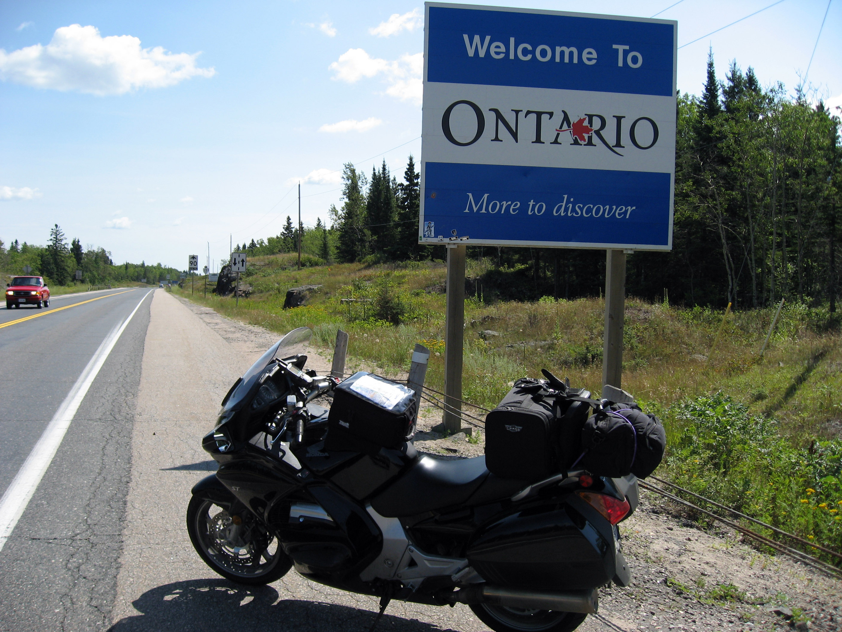 Another 5 minutes down the road, and I stopped by this "Ontario Leaping Moose" sign to emphasize what the Canadian Officer said. These signs are every few miles, although I'm disappointed that so far on my trip I have not seen a single live Canadian moose.