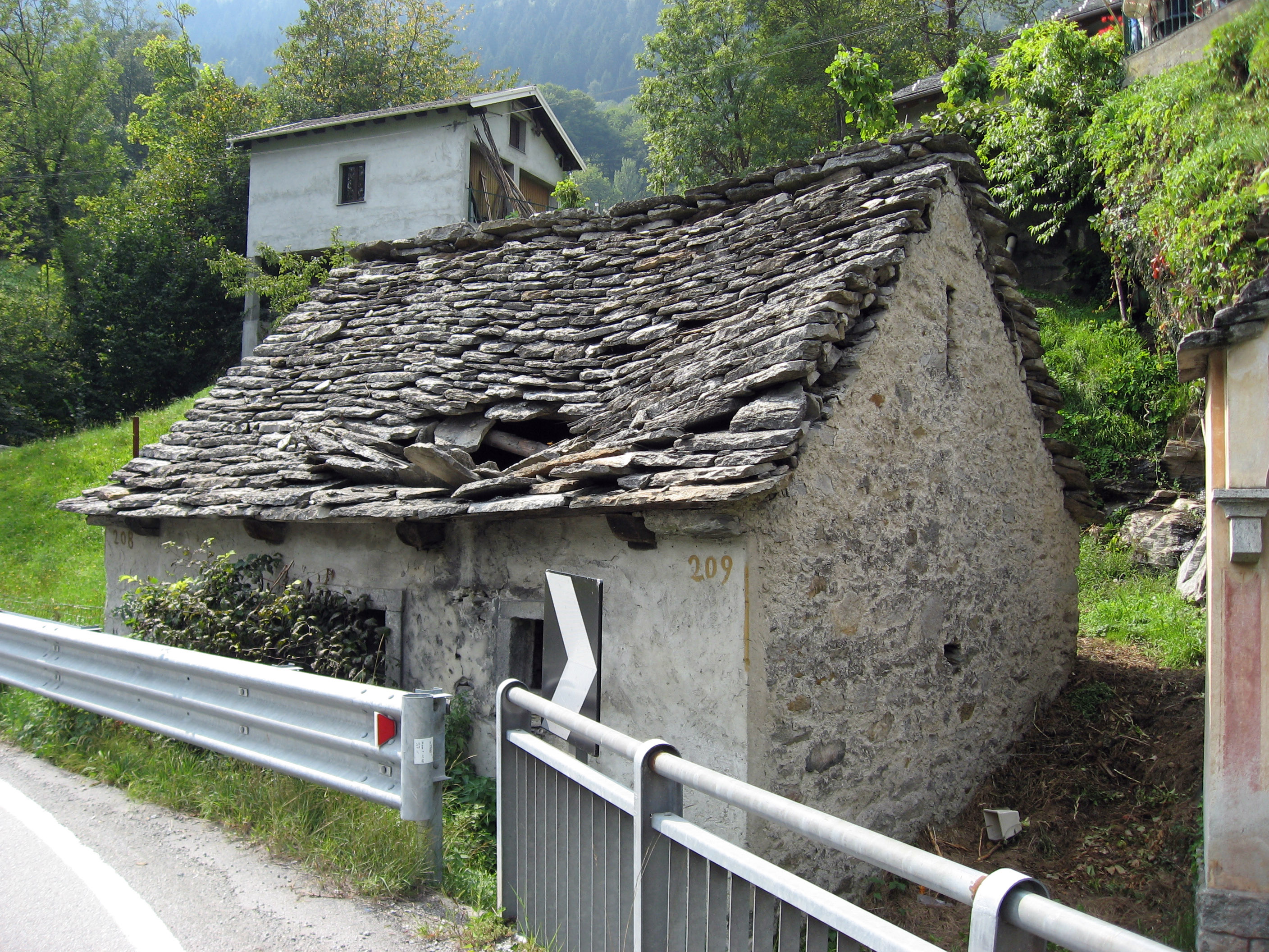 The day of Thursday, 9/7/06, was an optional day (two nights in the same hotel), so BrianB and I went exploring a few new roads on our motorcycles. On the map above, we started the morning at the hotel in Verbania, Italy (marked "H" on the map above), went up the small road from "J" on the map to "K" on the map (marked by red dots). The route took us up a steep Italian valley that was ROCKY -> meaning rocks in the fields, big rock walls on the sides of the valley, something that looked like a modern granite rock quarry, ROCKS, ROCKS, ROCKS! Below is a picture of some of the buildings in this valley made of rocks: