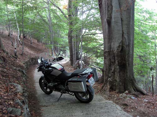 Later in the day we backtracked to "J" on the map above, then over to the little road marked "I" with red dots on the map. That road is very scenic and fun for motorcycles, yet I have no pictures. :-) The picture below is from the little white road marked "G" with red dots on the map. It seems unassuming on the map and not very long, but that is misleading. It climbs away from Lake Maggiore up into the mountains at an insane switchback rate, up something like 3,000 feet, and takes an hour or more to drive all the way around. The picture below shows a section of the road that detoured through a tiny town at the top, notice the width of the road?!! That is a two way Italian road! Very cute, very pretty, well maintained, paved, just insanely narrow width for a two way road through the mountains.