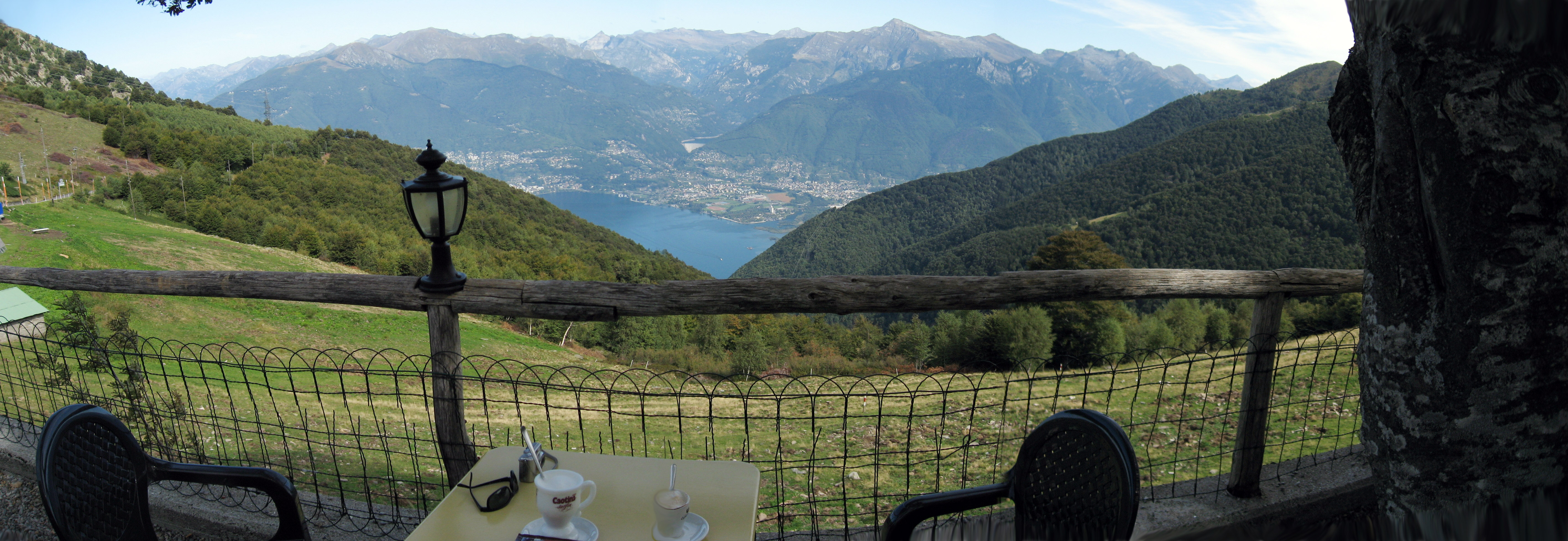 This is the cappuccino we had, and the view we had while drinking it. This picture was taken about 11:30am, more than 2 hours after we left the hotel, but that is the same lake (Lake Maggiore, Italy) that we started at! We can almost see our hotel from here after more than 2 hours of driving!