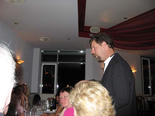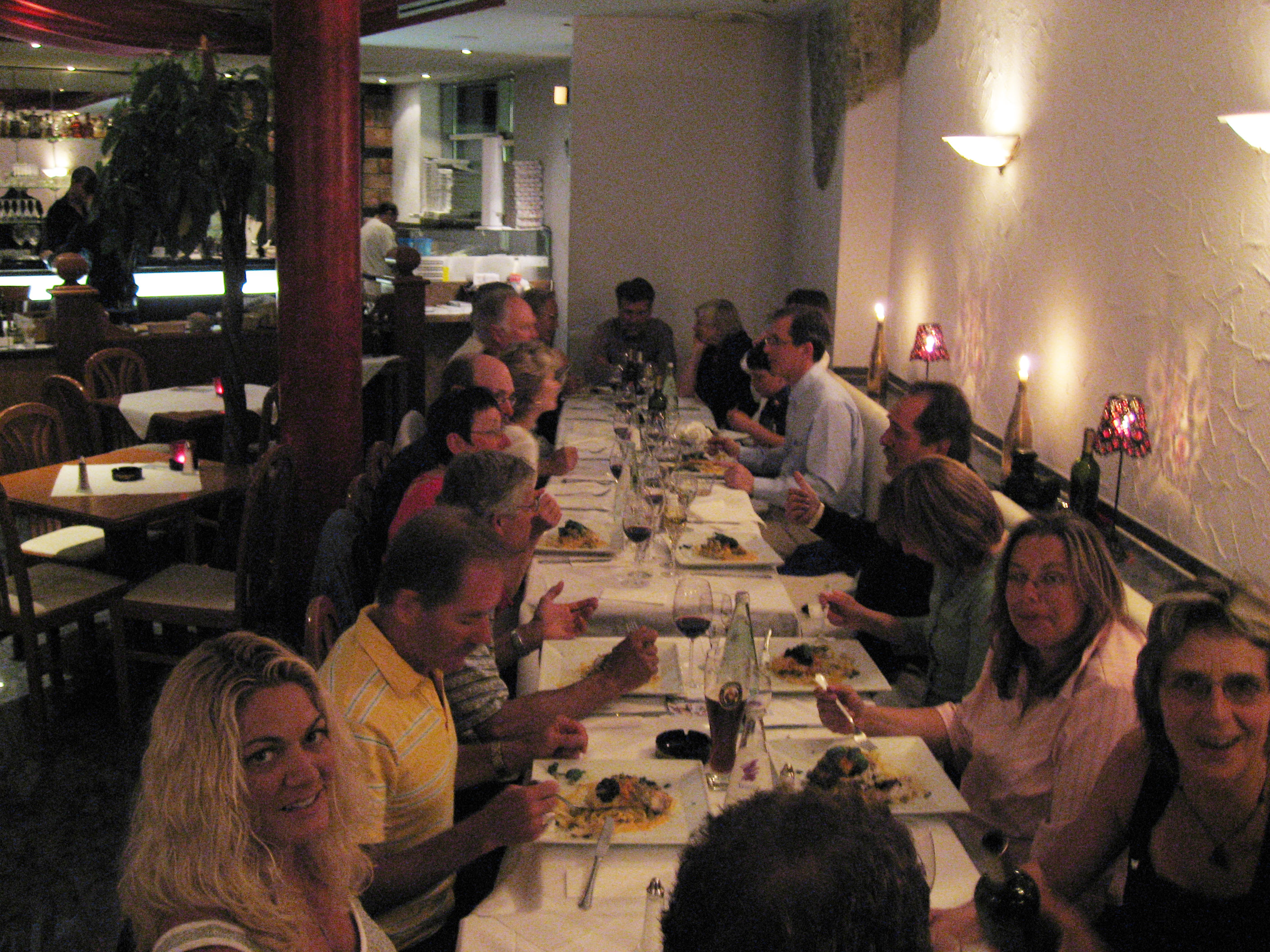 Here we all are at the final tour dinner. I had to brighten this photo to bring out the details.