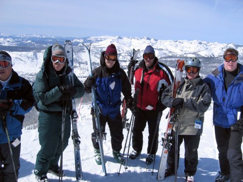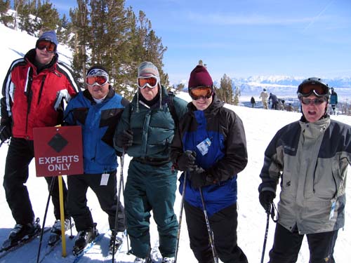 Here we are waiting for the bus from our condo to the slopes on the morning of Saturday, March 4. On the far left in blue is Brady Nilsen, Paul Wieneke, Brian Wohletz in the red jacket in back, Brian Baird, and Mike Chow on the far right.