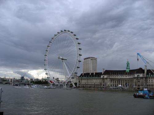 The next day (8/16/07) was the first time Nilay and I met up with with the main birthday crowd. The first birthday event was a champagne toast on "The London Eye" which is the big Ferris wheel pictured below.