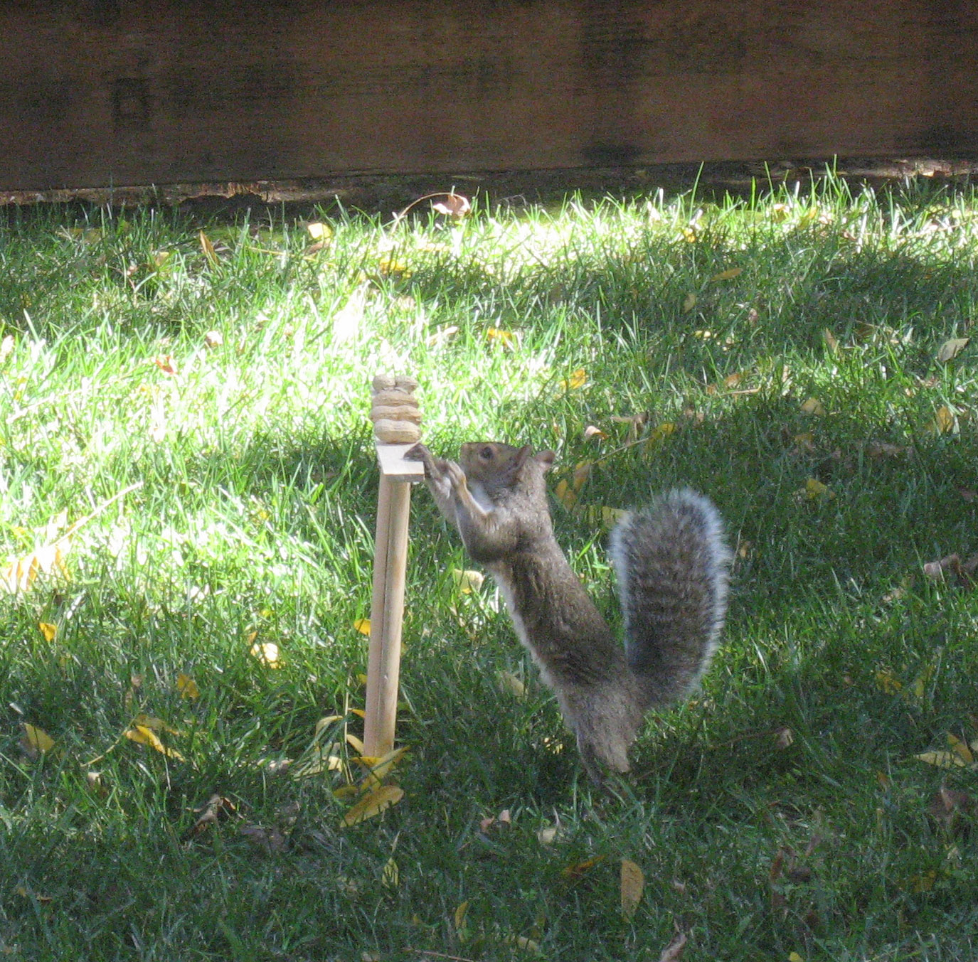 A very simple "T-Bar" with peanuts. The squirrels walked out into the yard and grabbed them and took them back to their favorite trees to eat (or store).