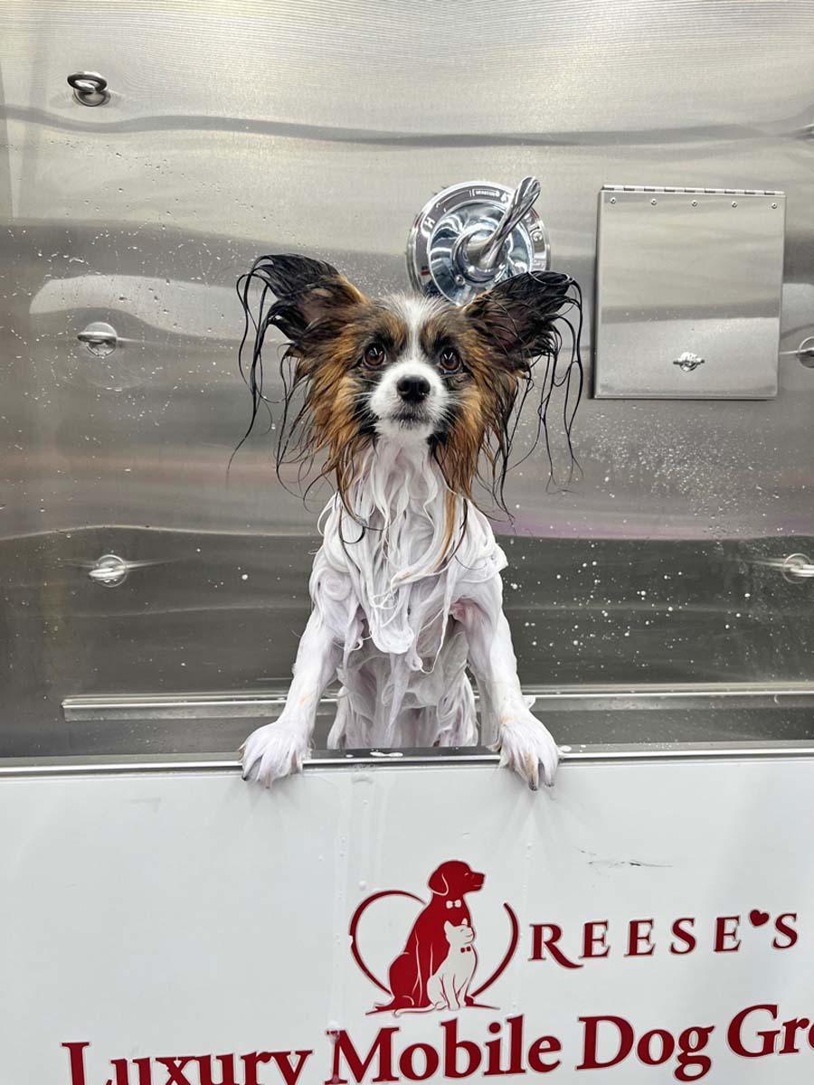 Ava gets groomed every month by a dog groomer that comes in a van. The groomer took this photo on 5/7/2025.