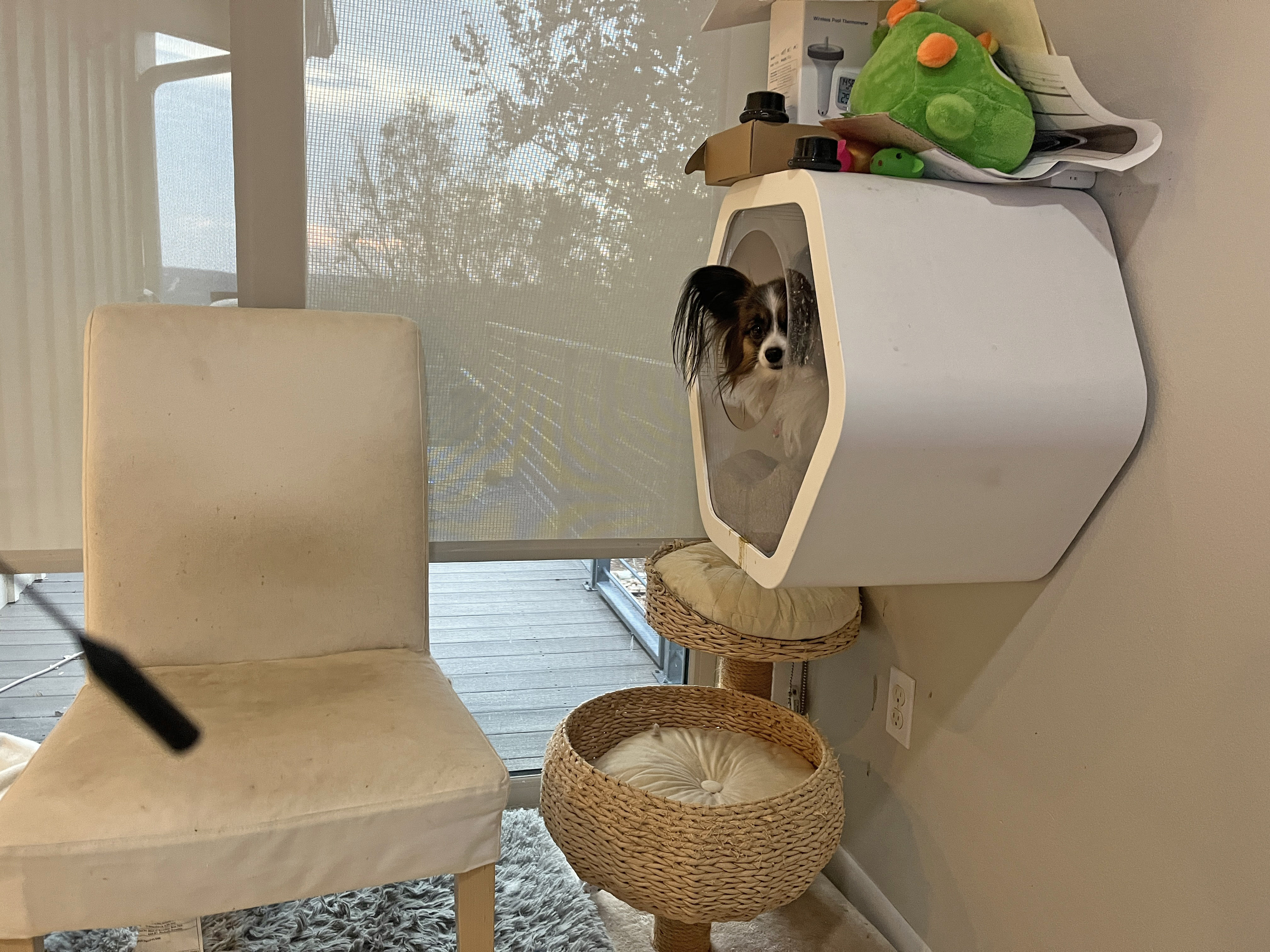 7/27/2021 - I setup the cantilevered cat tree in the corner of my home office, and mounted a new hex pod Katherine bought from Etsy. Bentley or Pixie often spend the night in the new hex pod.