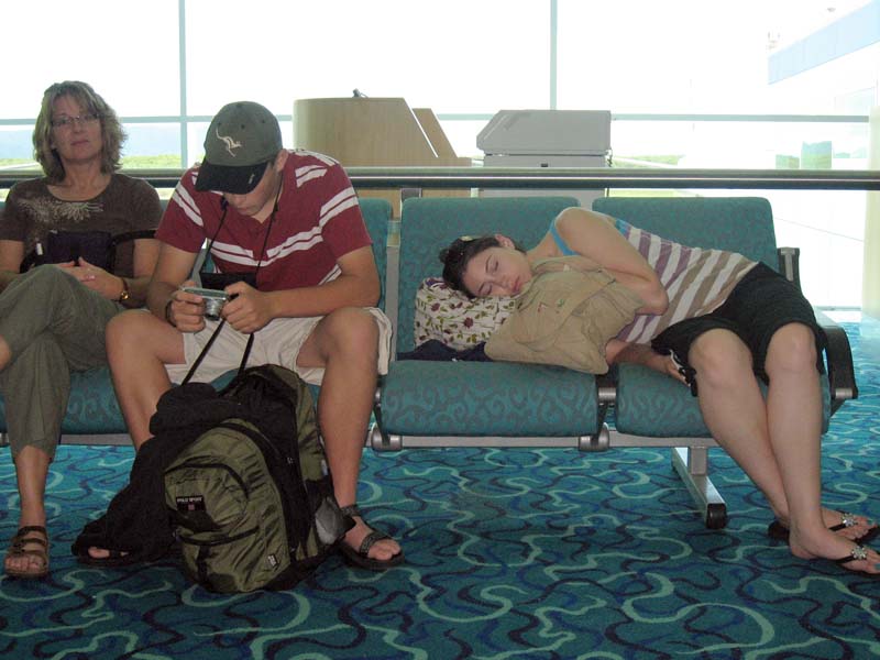 We travelled from Cairns, Australia (click here for pictures relating to our days in Cairns). Here we are waiting in the Cairns Airport for our flight to Goroka. Cheryl on the left, Nathanael with the camera, and Katie crashed out on her bag.