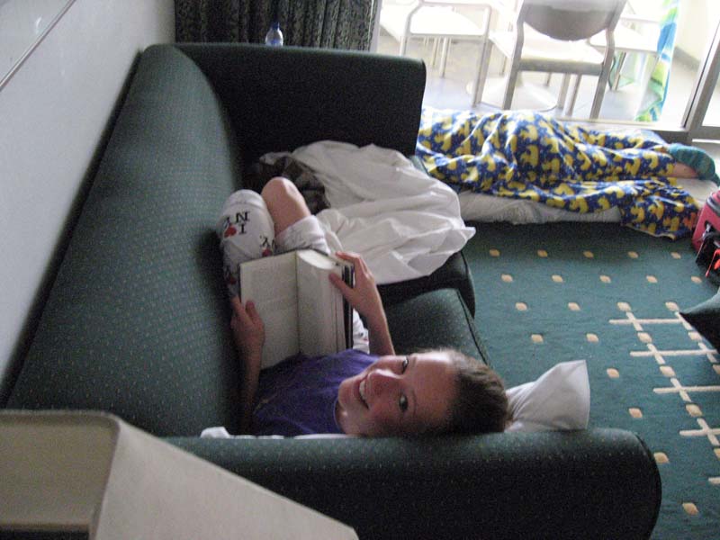 Ari at 7am in the morning. Notice the iPod ear buds in her ears, and the iPod on the floor STILL PLAYING. All 4 grandchildren slept with their iPods in their ears, they say they do it at home also (sometimes with external speakers). The world has changed in the last 5 years.