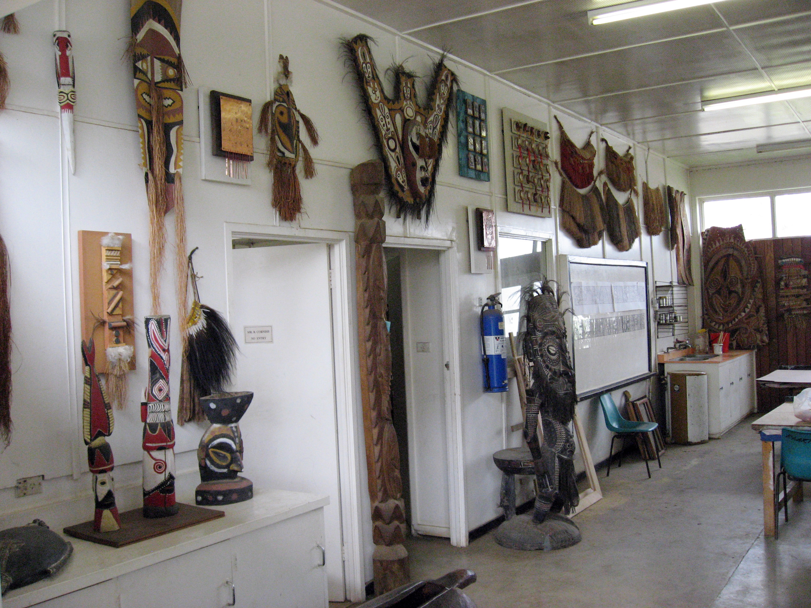 A quick peek inside the University of Goroka "Expressive Arts and Religious Education Department" front office shows an assortment of highlands and Papua New Guinea artwork.