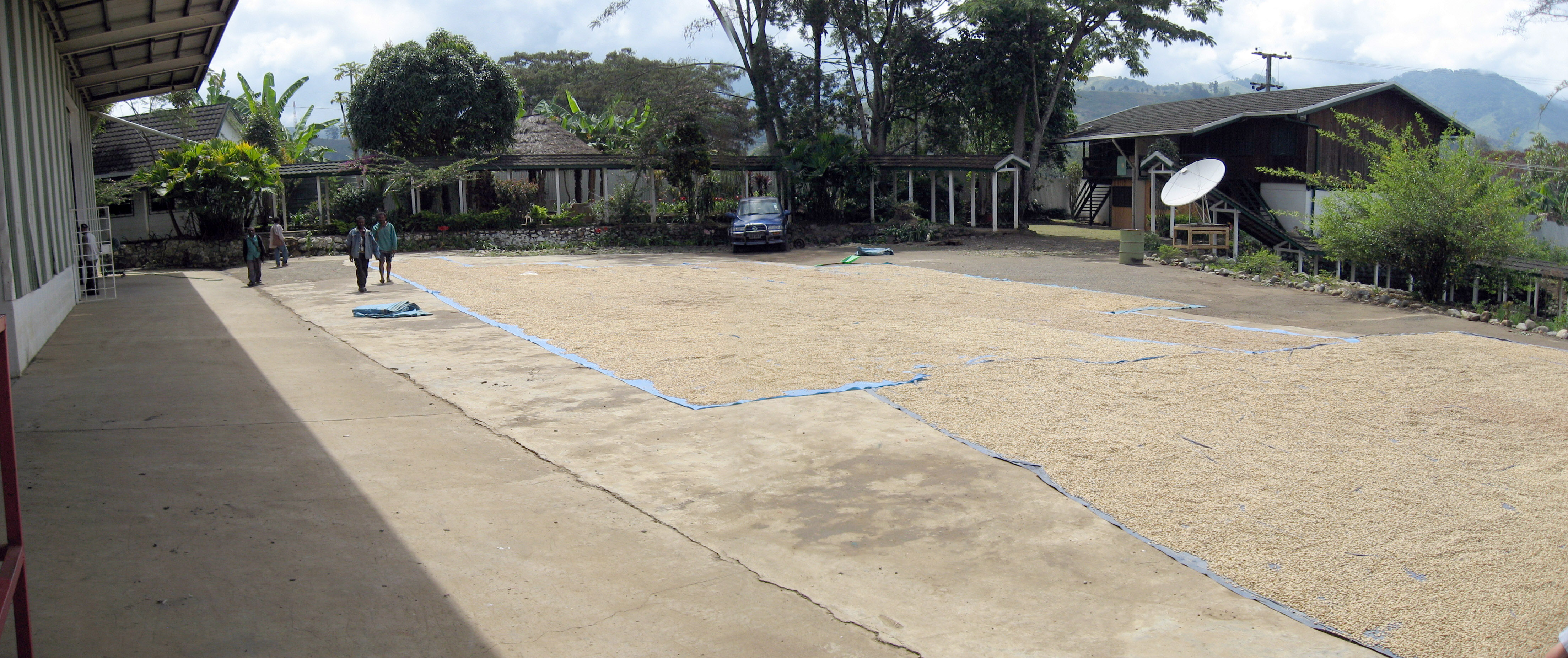 Coffee is spread outside to dry here on this big tarp.