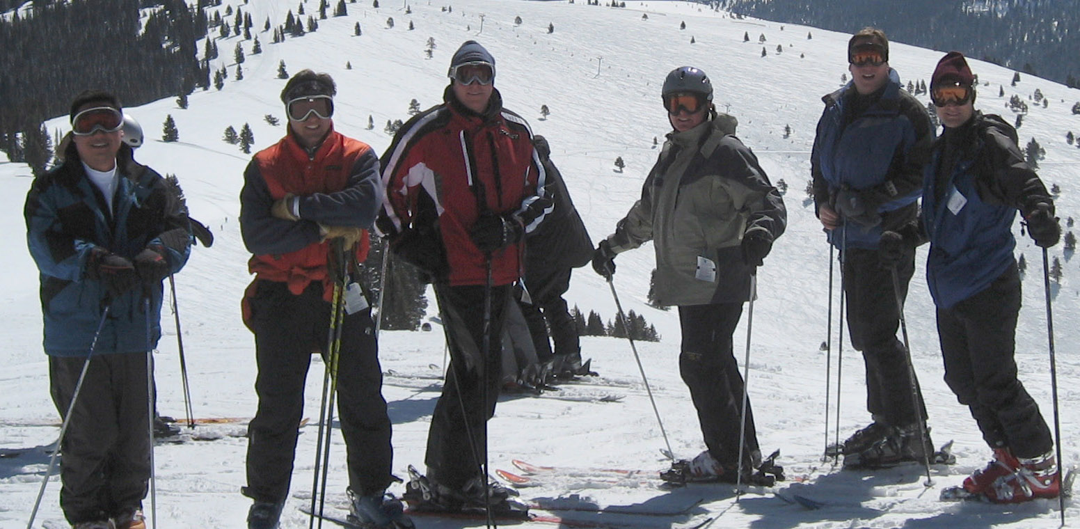 Here is our group at the "Lion's Head Base Area" at the end of a fabulous day of Vail skiing, big BIG sunshine, and plenty of snow. From left to right that's Garth, Paul, Brian Wohletz, Mike Chow, and Brady Nilsen on the far right.