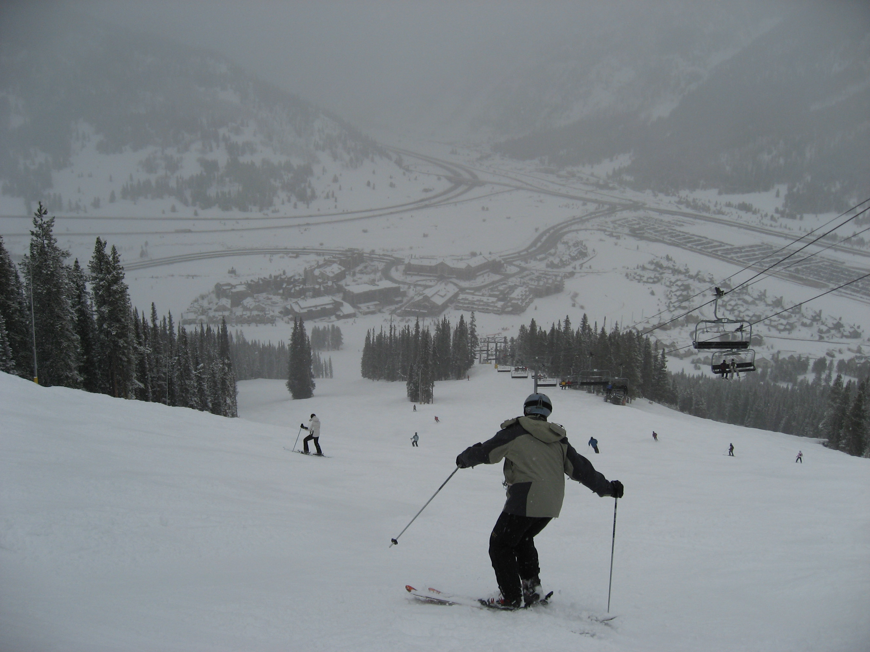 Breckenridge has a lift that goes up to 12,840 feet (3,914 meters) called "Imperial Lift". This is the highest lift in North America, so I wanted to get a picture of myself at the top. :-) That's Russ in orange lying in the snow, Michele in Pink, and me in blue.
