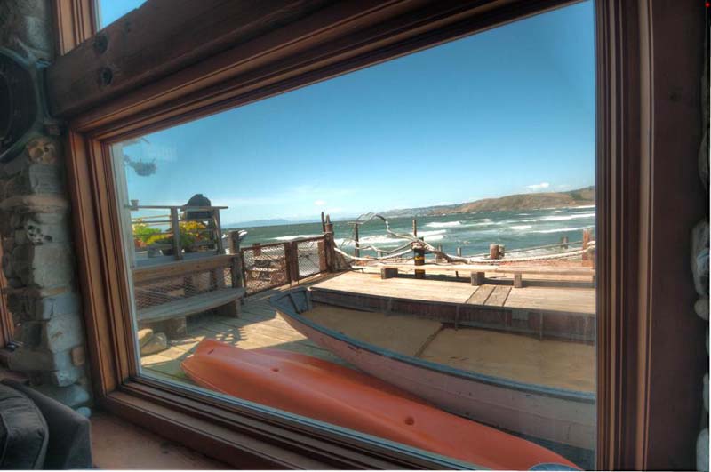 The front windows looking towards the Keating dock. We left behind a couple of pictures on the high mantle there of nautical and train scenes that go well with the house, but it is Ok if the next resident throws them away.