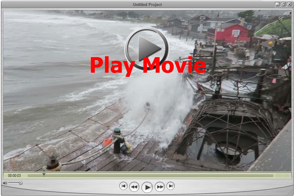 On December 21, 22, 23 of 2014 California experienced a "King Tide" (where the Sun, Moon, and Earth are in alignment causing large tides). Here is a movie from the waves hitting the Pacifica Docks. Click here for the highest quality original (probably will not play on Microsoft Windows).