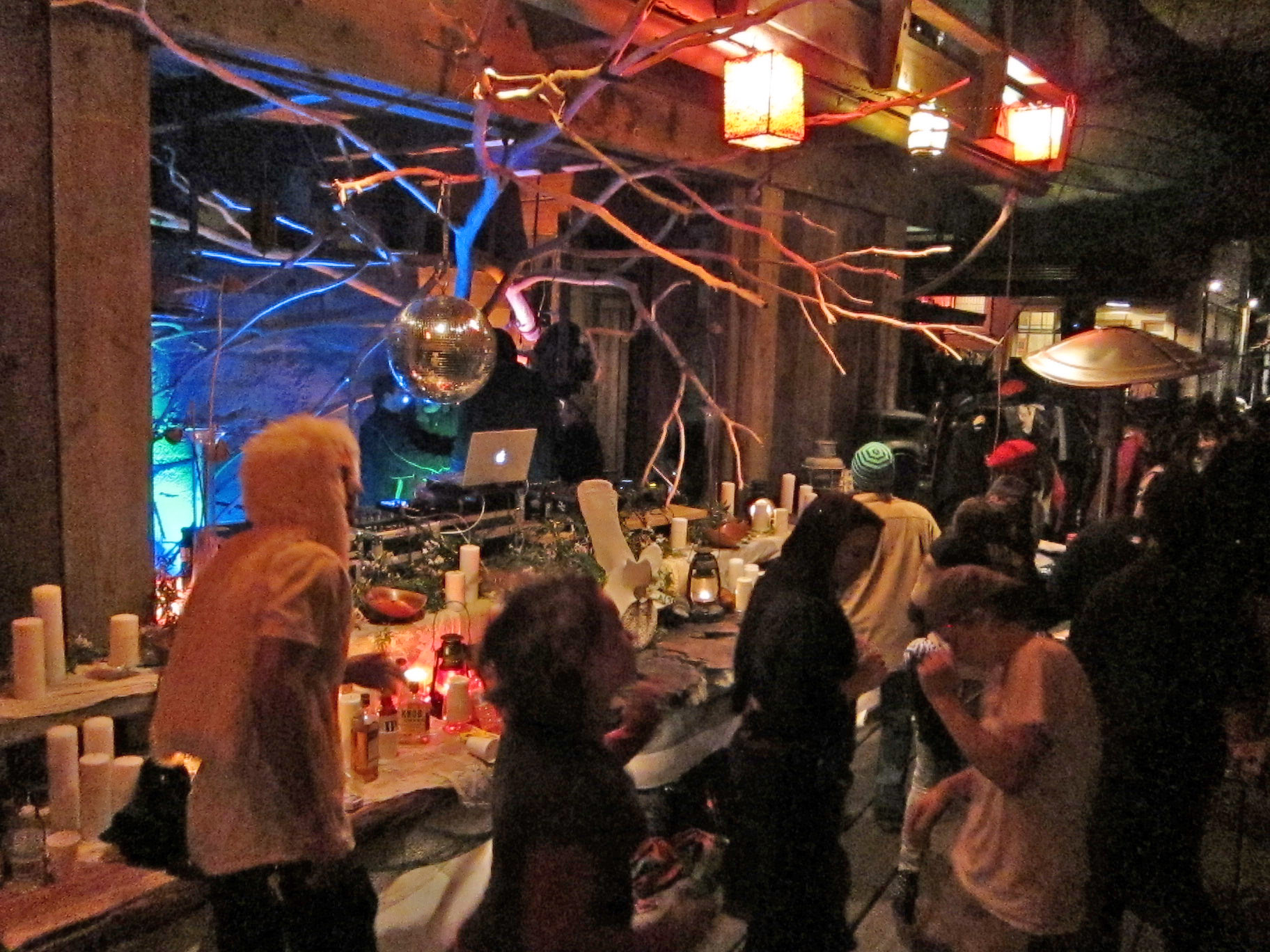 The picture below is the same angle as the picture above, just backed up a little so you an see the fire pit roaring away near the dancing party goers.