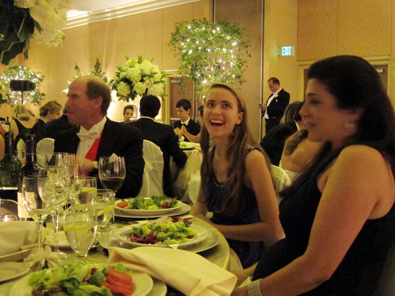 Finally dinner! The main pressure and ceremony are all over. Melanie and her escort are across our table from us.