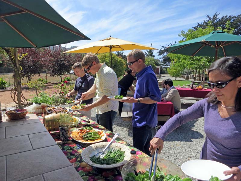 Food served. From left to right Casey Jones, Dave Stallard, SBrian White, Cecilia Luu (in sunglasses on far right).