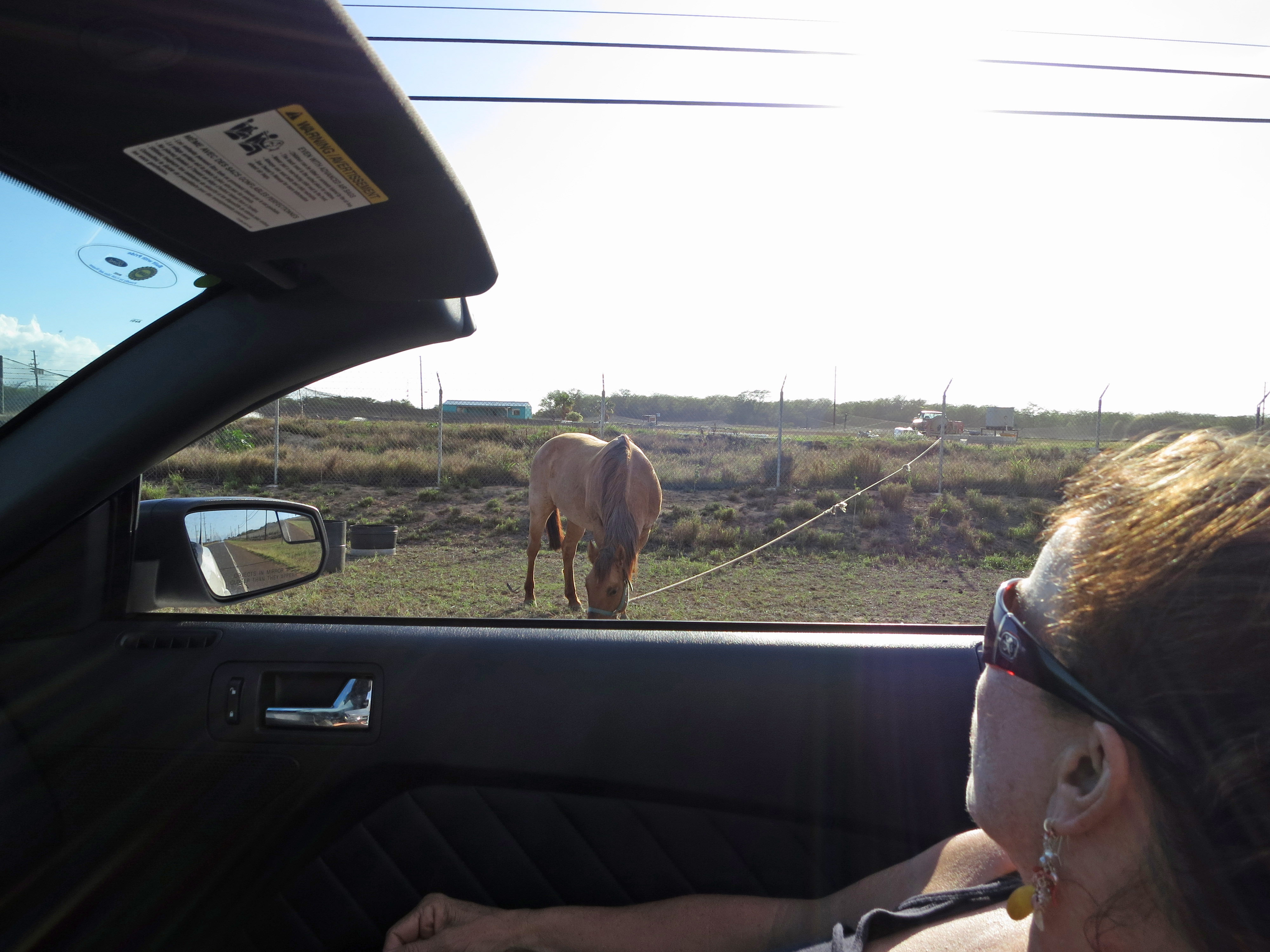 Driving west with the coast on our right (picture by Katherine from back seat of the convertible).