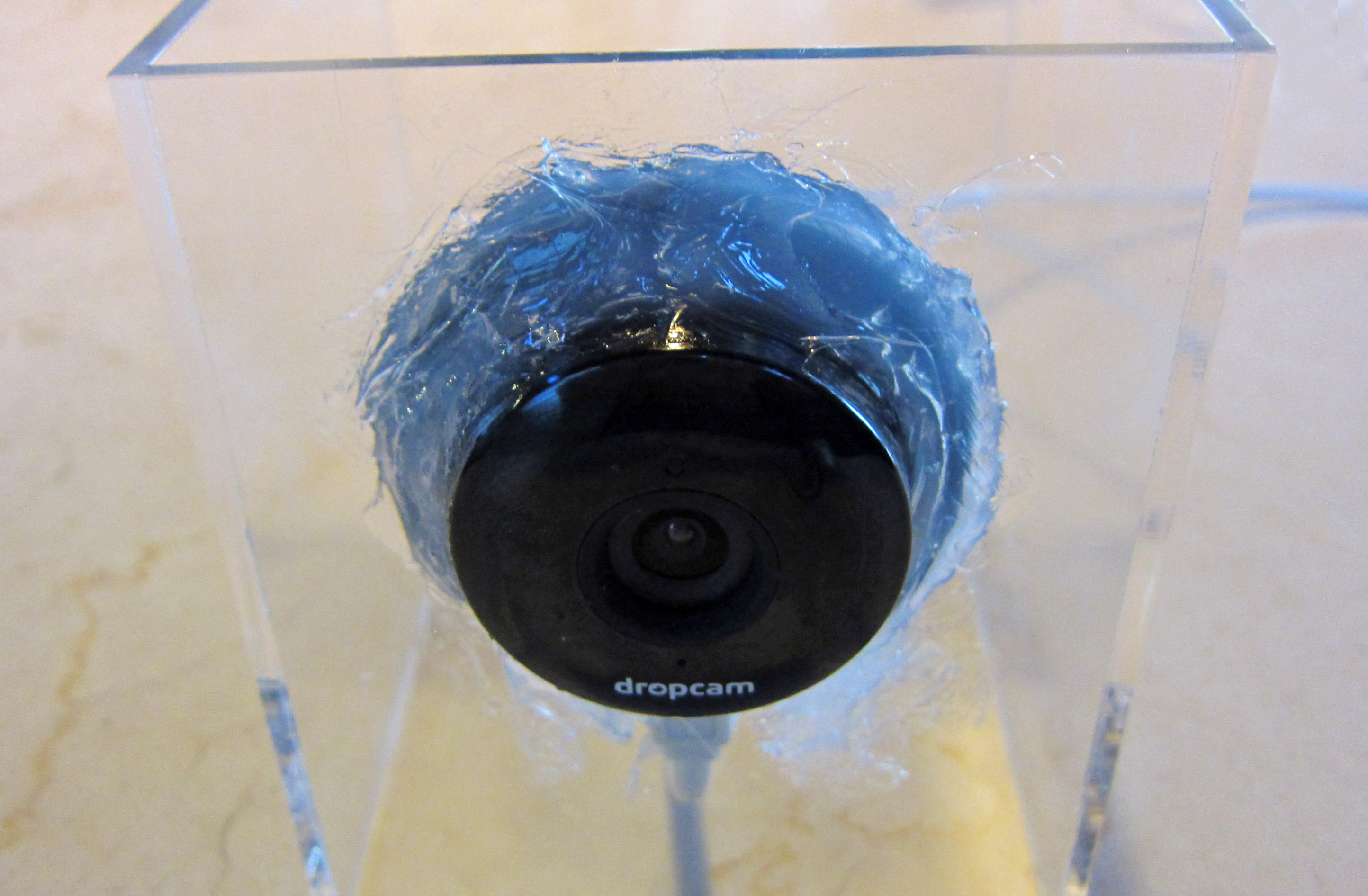 Here I push the silicone ringed Dropcam through it's portal.