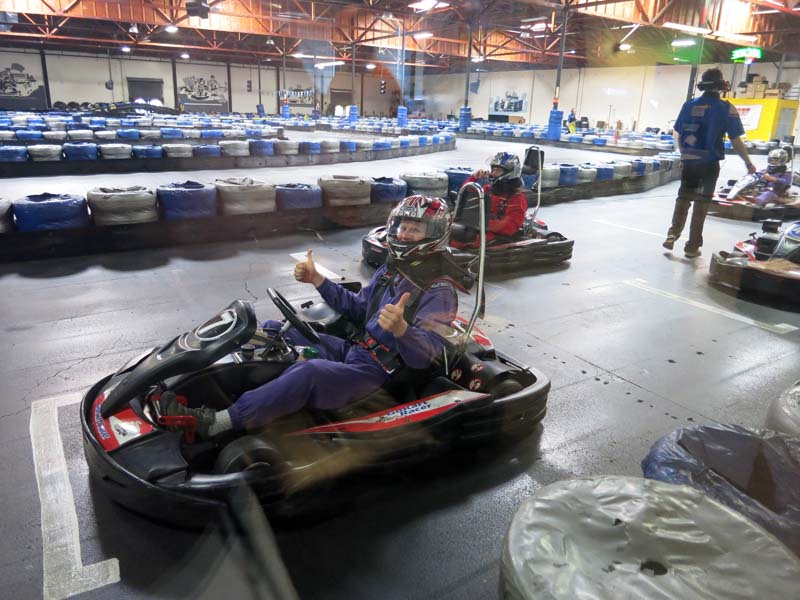 Dave Stallard giving two thumbs up waiting to race GoKarts.