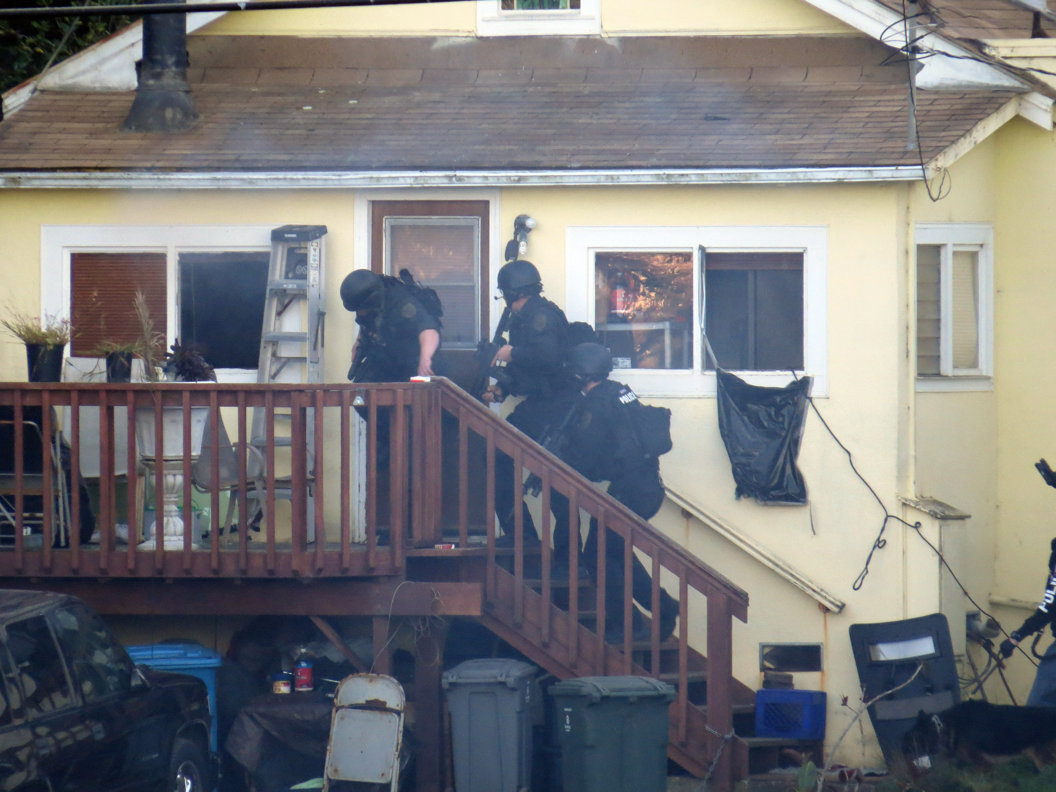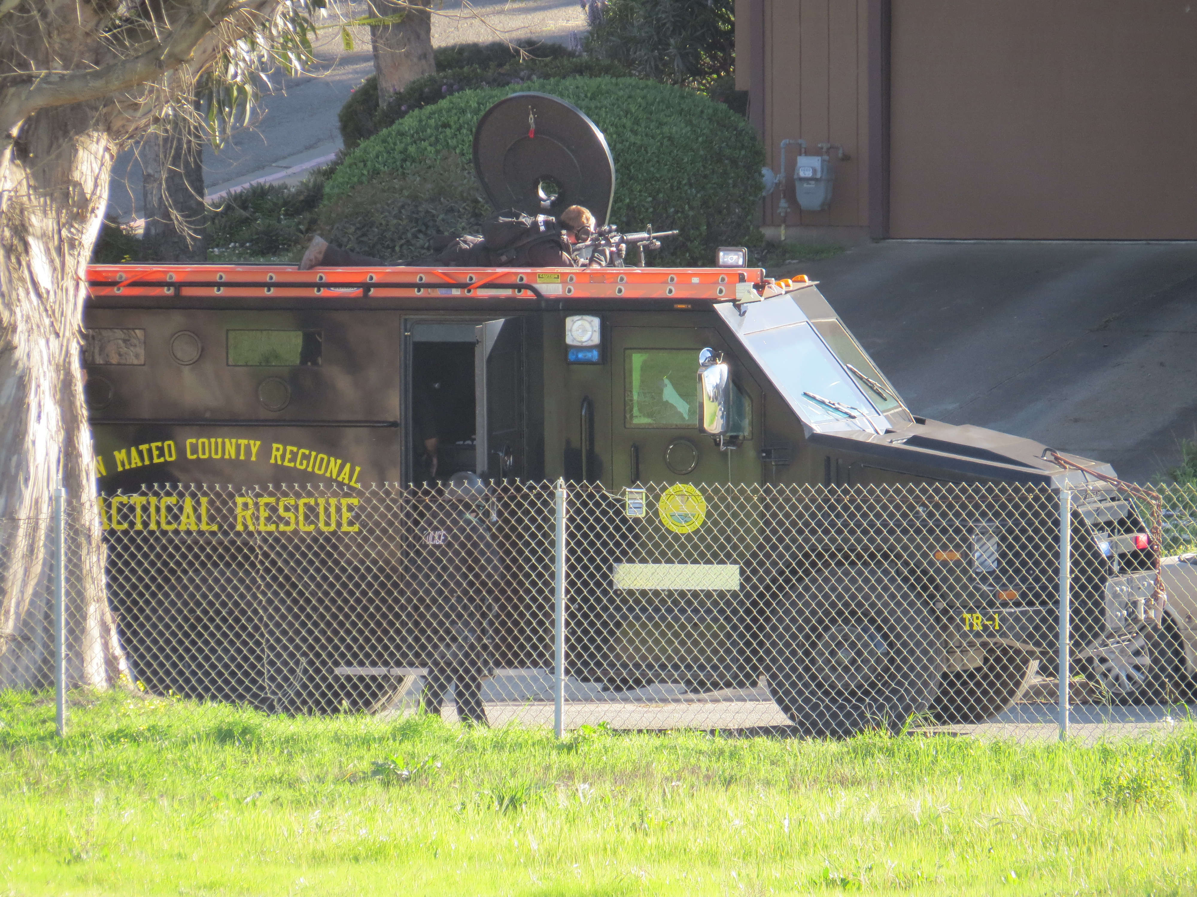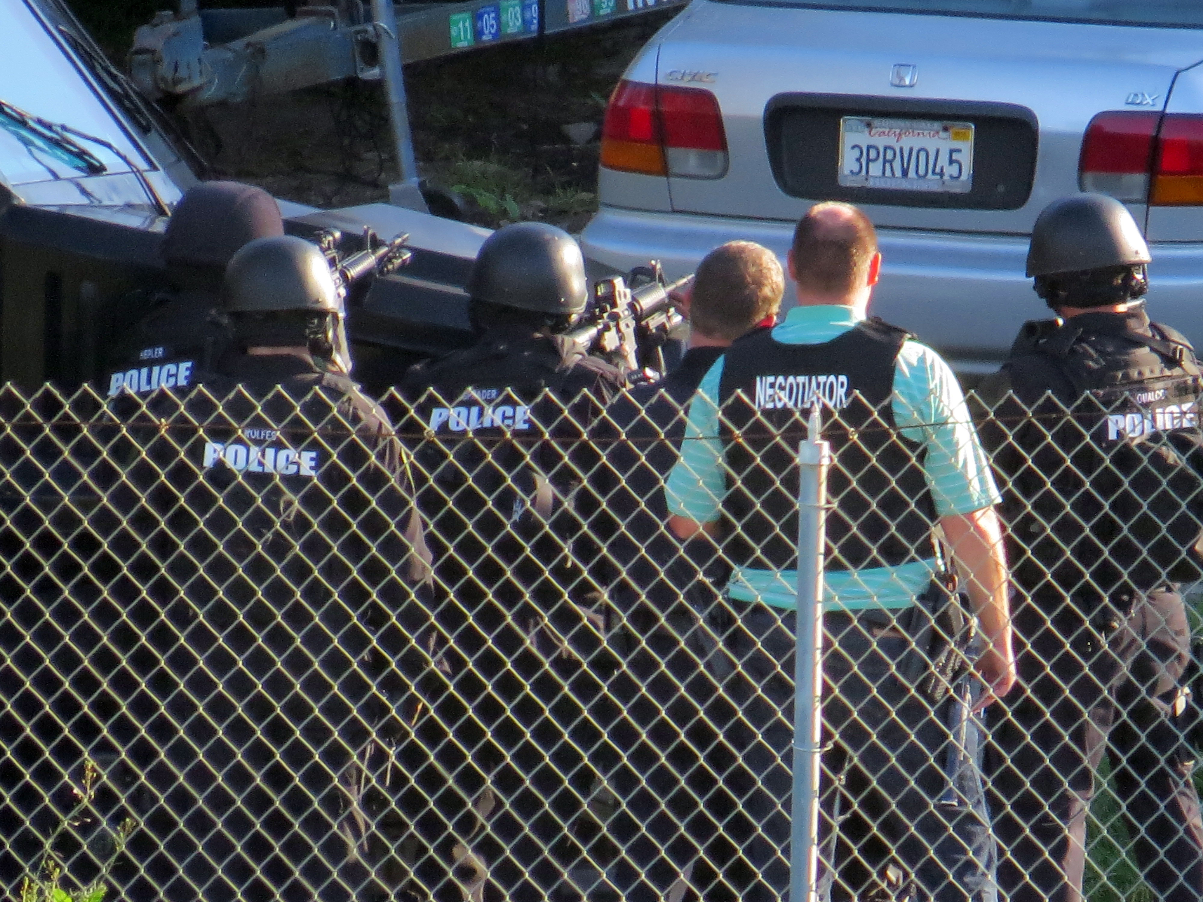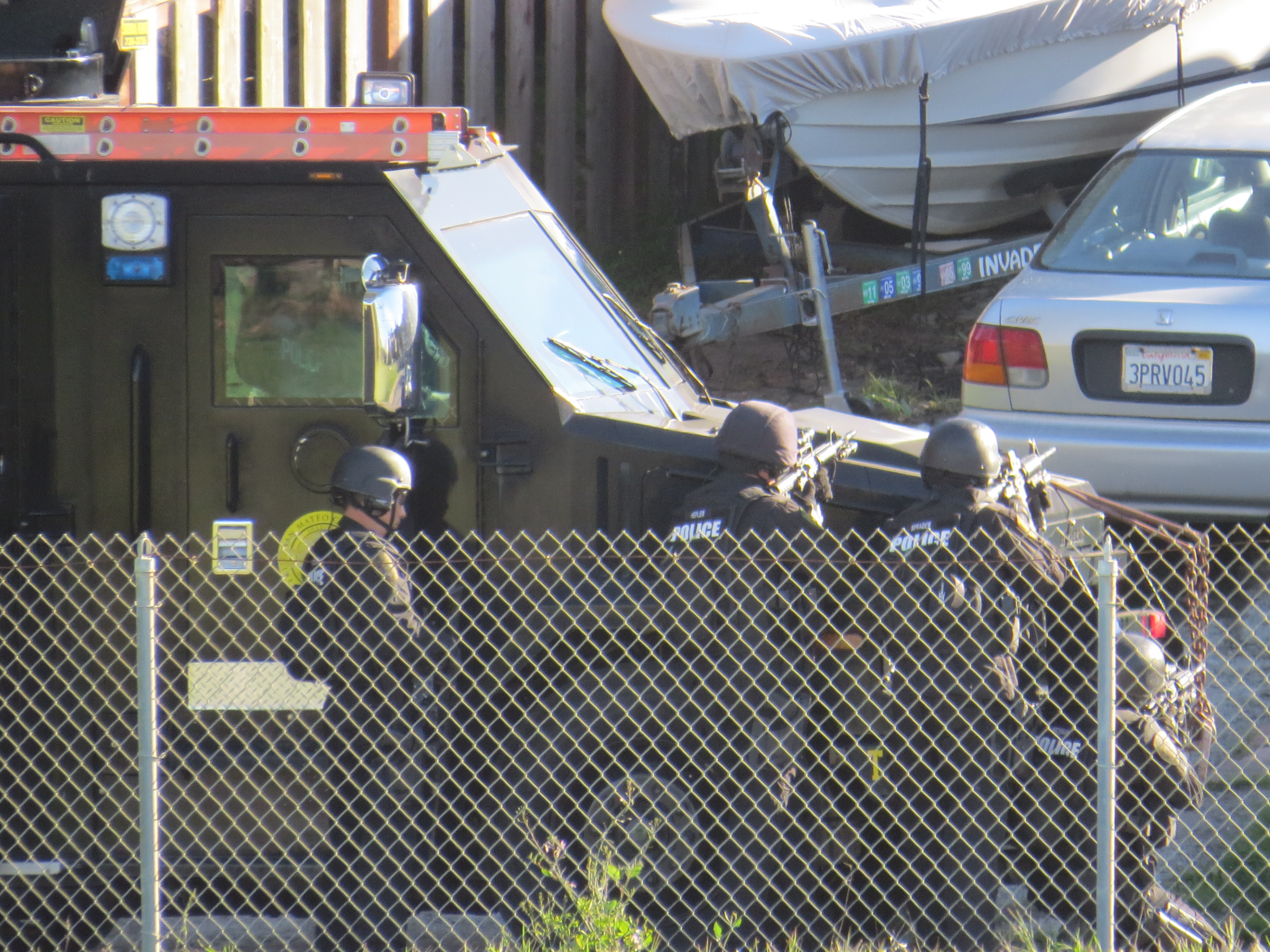 On March 18, 2014 there was a police standoff for more than 6 hours in Pacifica at the 300 block of San Pedro Avenue (on Pedro Point) in Pacifica, California. These pictures were taken with the people taking pictures handing the camera around and standing on my property. The man barricaded inside had the name of Errol, and his family and police were in front of his house by 12:20pm at least, and it all ended around 7pm when they shot and killed Errol. Click Here for a new story about it (sfgate.com). Click here for yet another news story (San Mateo County Times). Click here for an interview with Errol's brother (San Jose Mercury News).