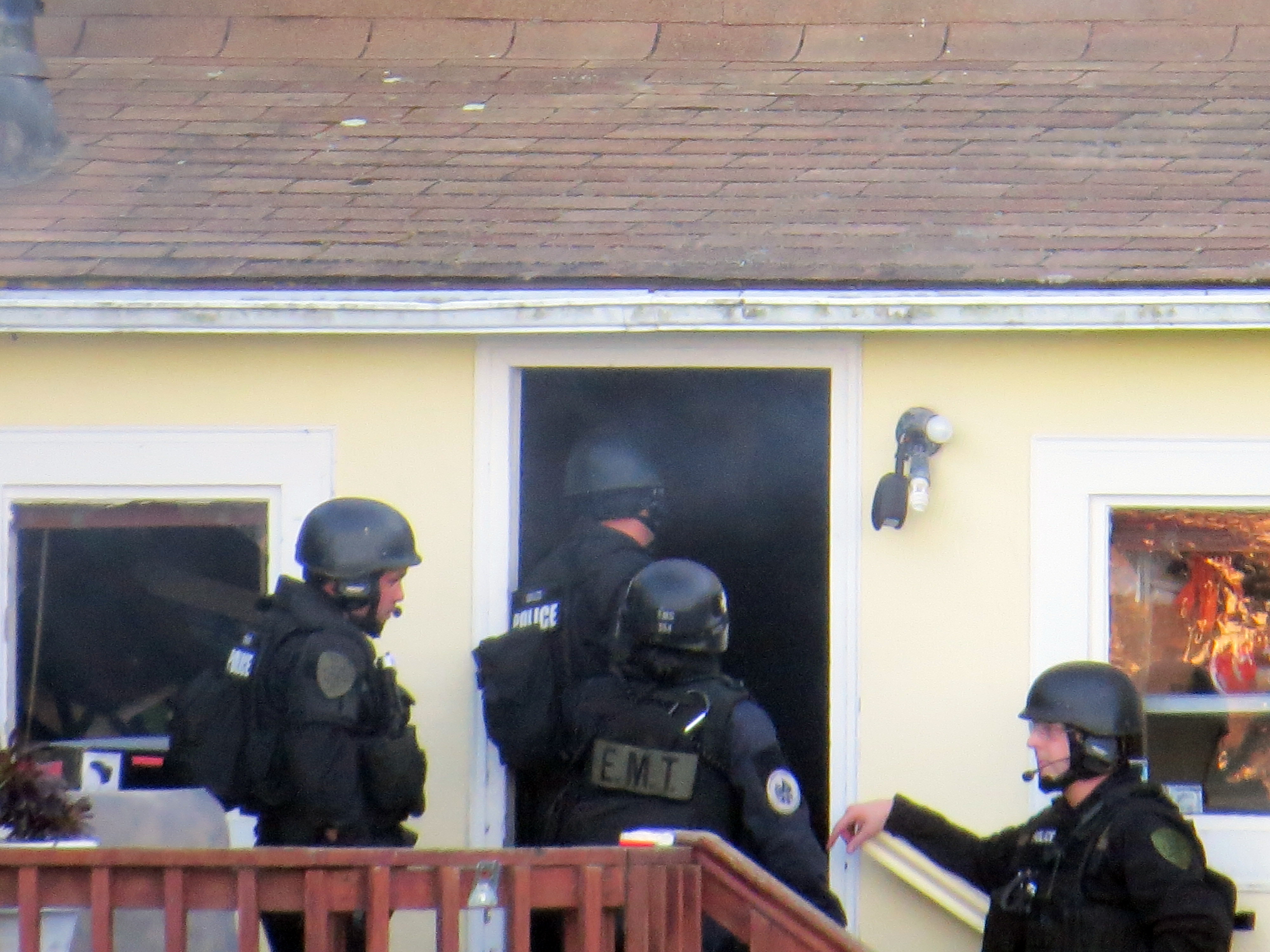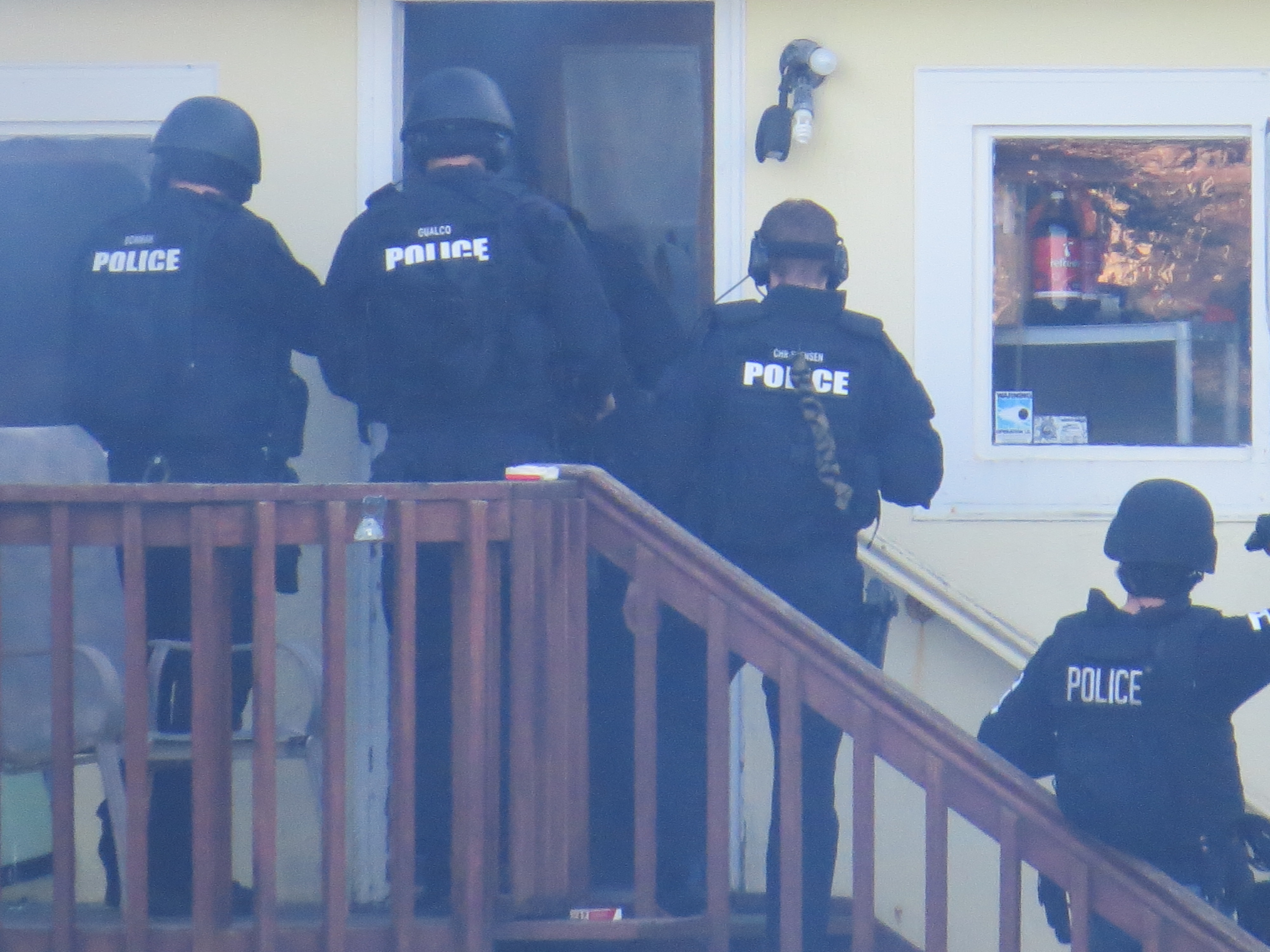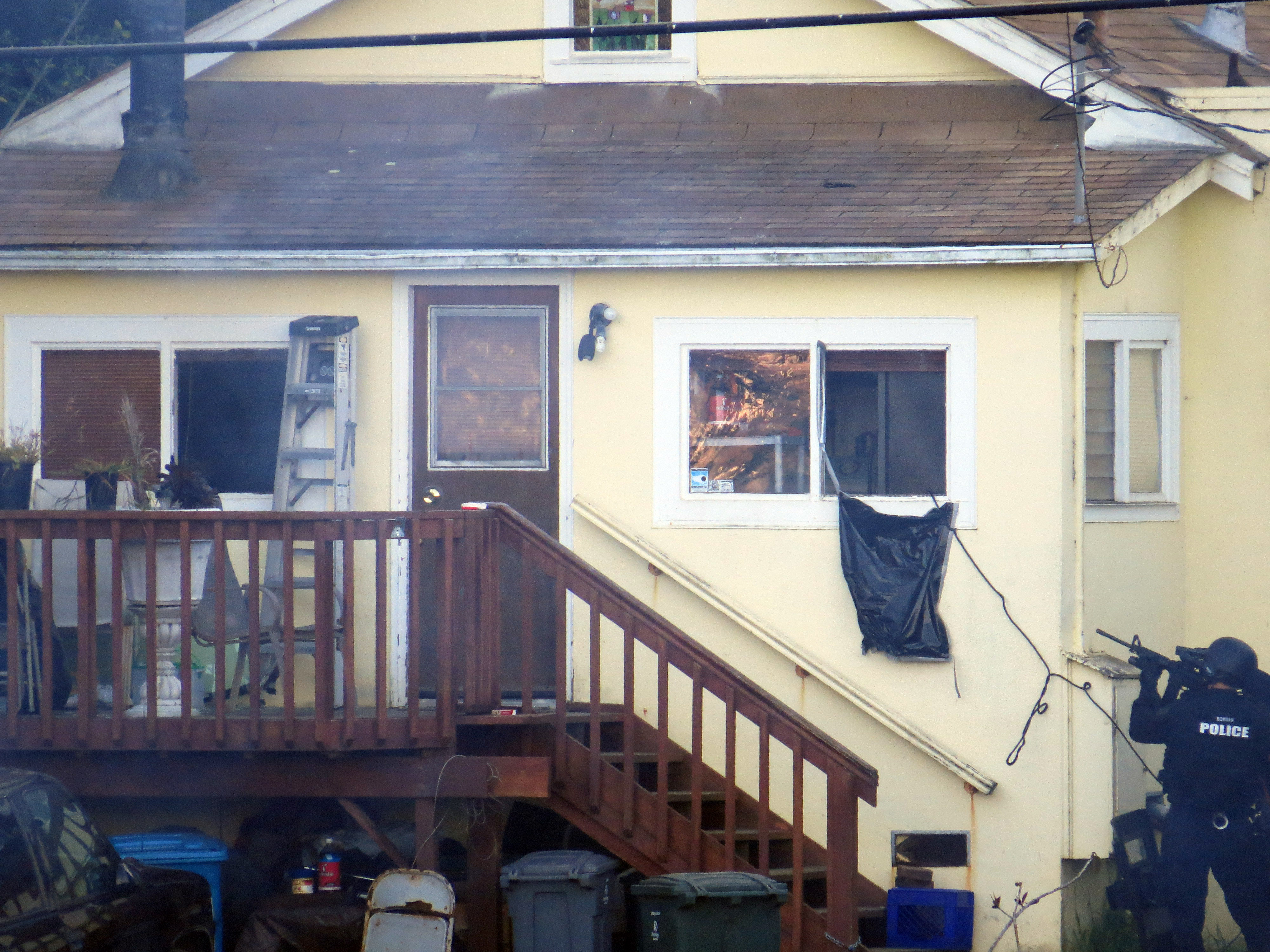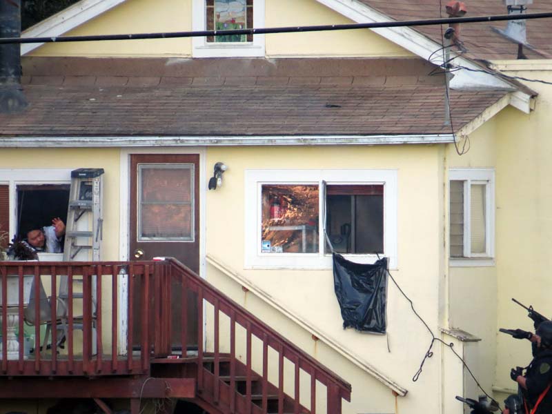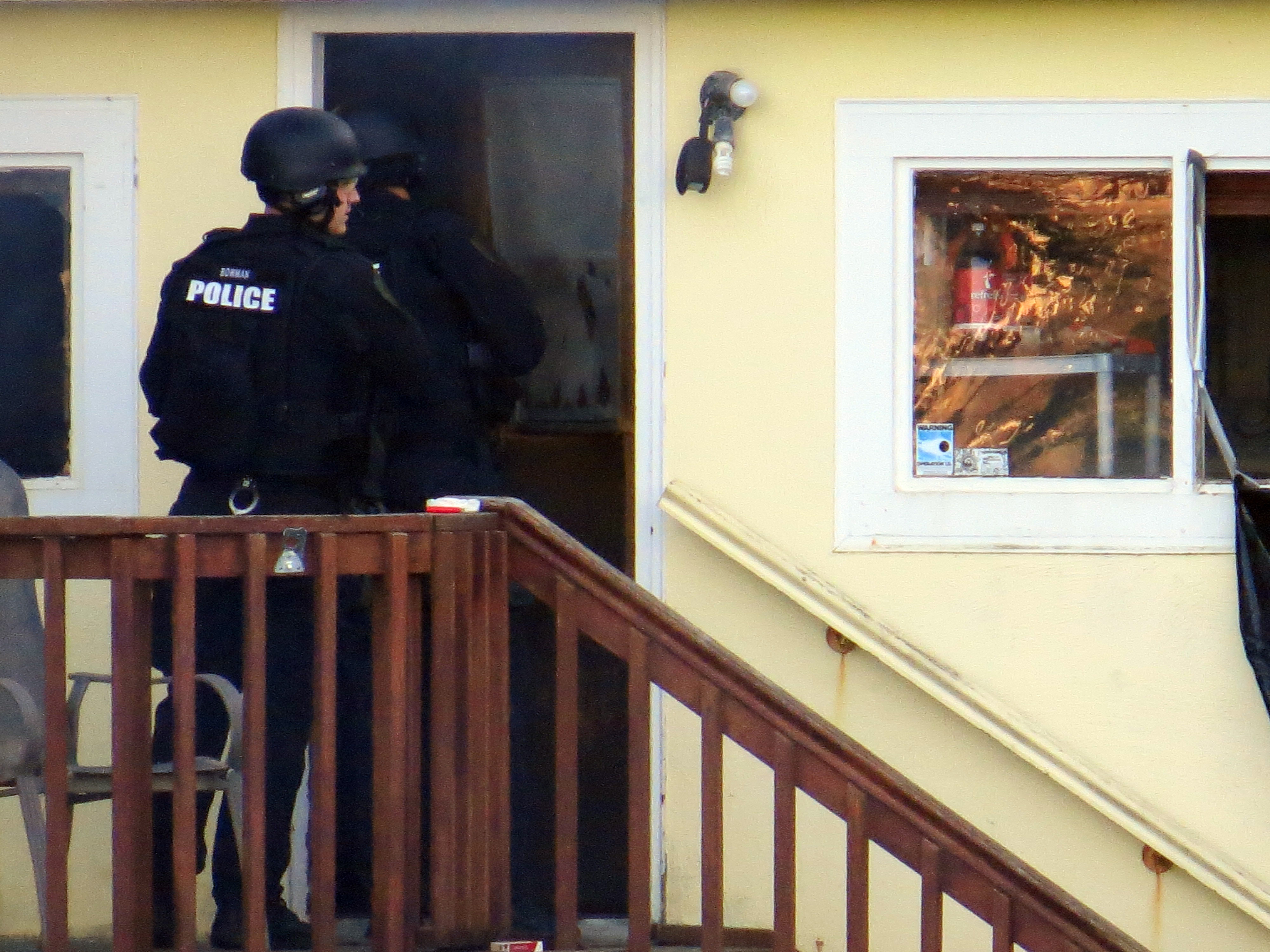 On March 18, 2014 there was a police standoff for more than 6 hours in Pacifica at the 300 block of San Pedro Avenue (on Pedro Point) in Pacifica, California. These pictures were taken with the people taking pictures handing the camera around and standing on my property. The man barricaded inside had the name of Errol, and his family and police were in front of his house by 12:20pm at least, and it all ended around 7pm when they shot and killed Errol. Click Here for a new story about it (sfgate.com). Click here for yet another news story (San Mateo County Times). Click here for an interview with Errol's brother (San Jose Mercury News).