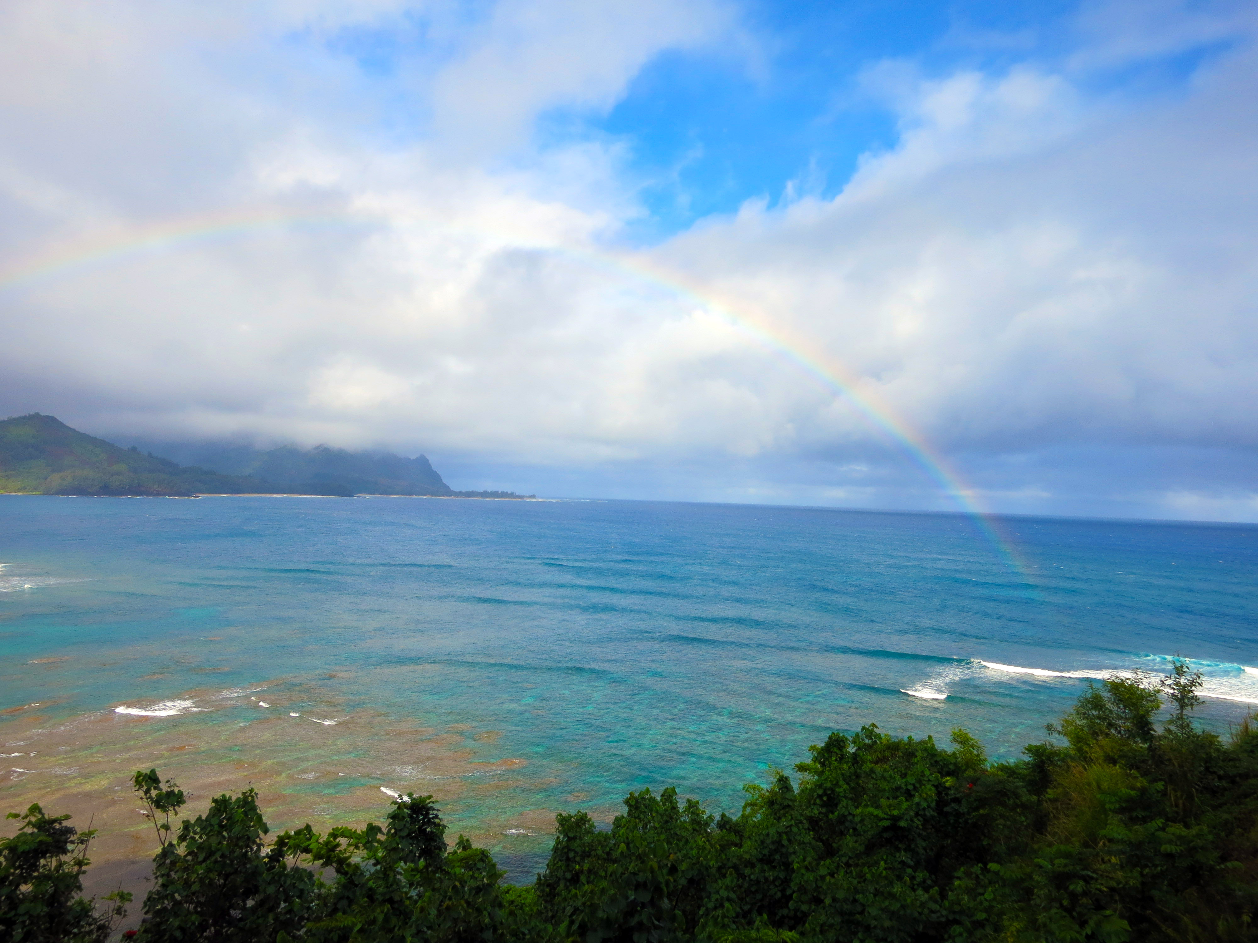 A rainbow over Hanalei Bay lit up in the morning for us.