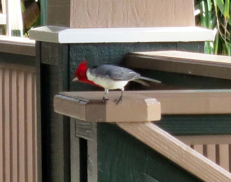 This Cardinal (a bird) landed on the deck. The birds are very spectacular in Kauai.