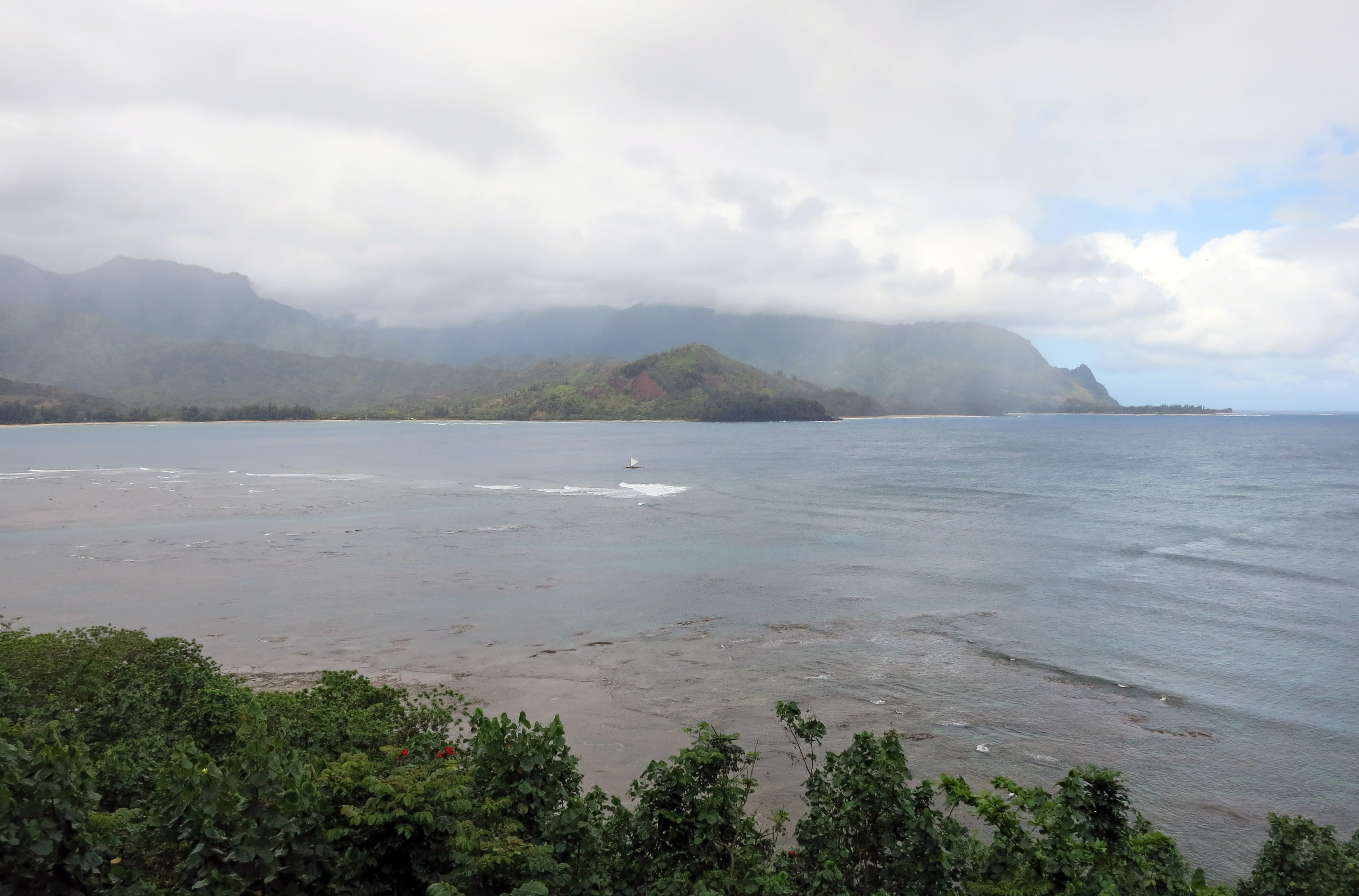 A sailboat in Hanalei Bay (see the next following photo for a close up).