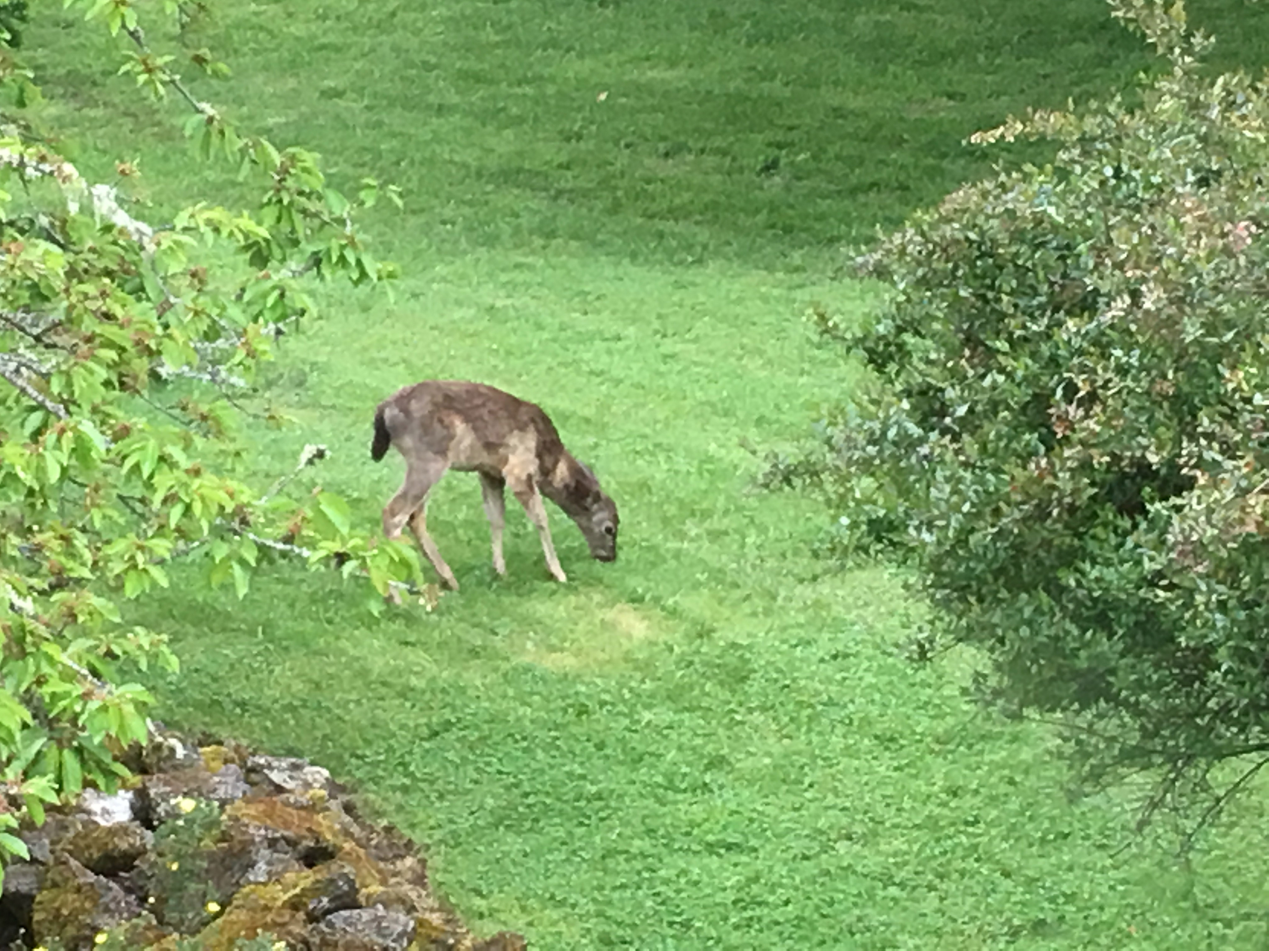 The deer would stand on hind legs to eat the leaves from the tree. If you look closely, the front legs are not touching ground.