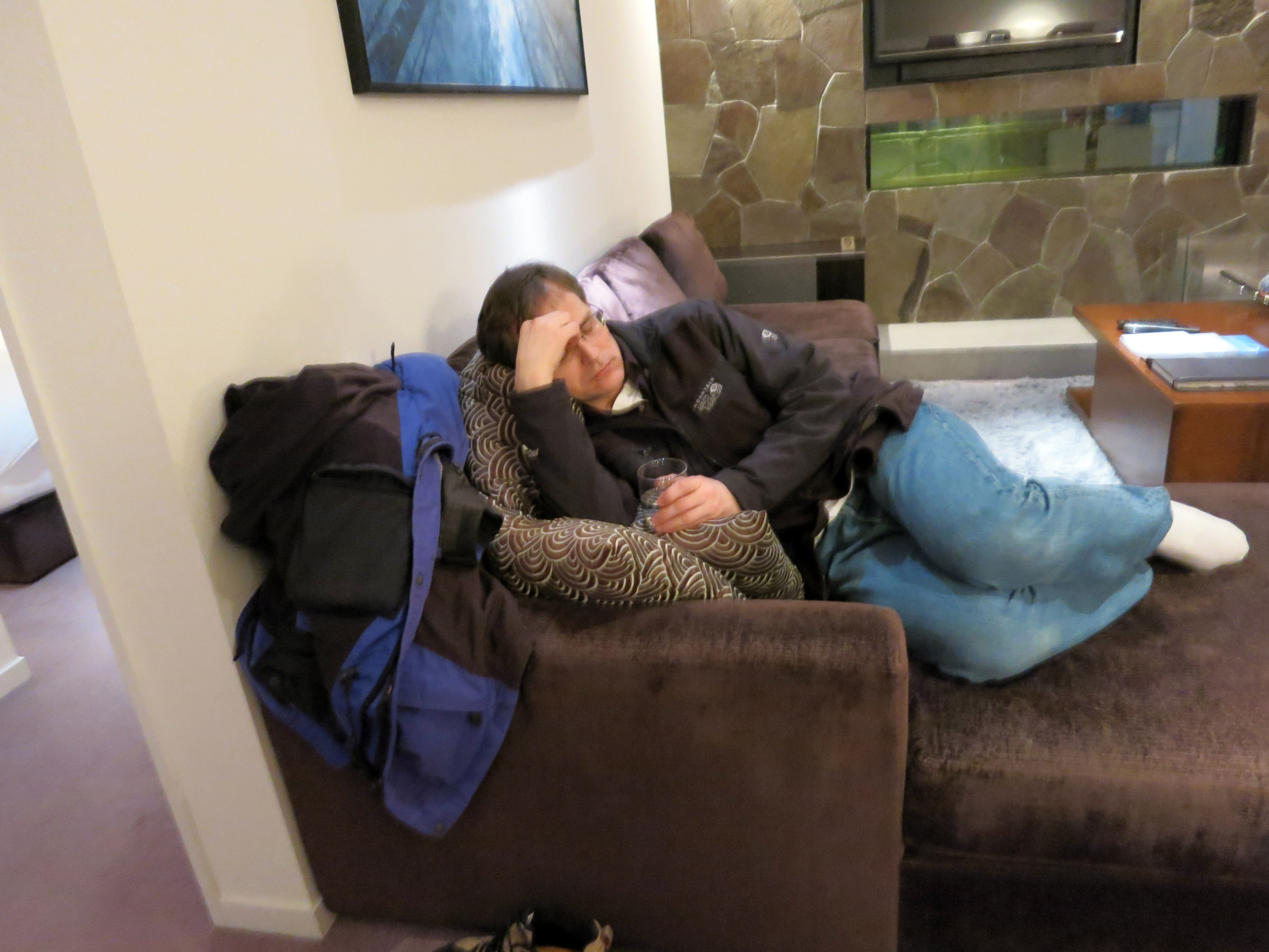 Brady had the most flights of anybody that day (two days? It is like 20 hours and you take off one day and land the following day), and was shattered by the travel. Here he is resting his eyes.