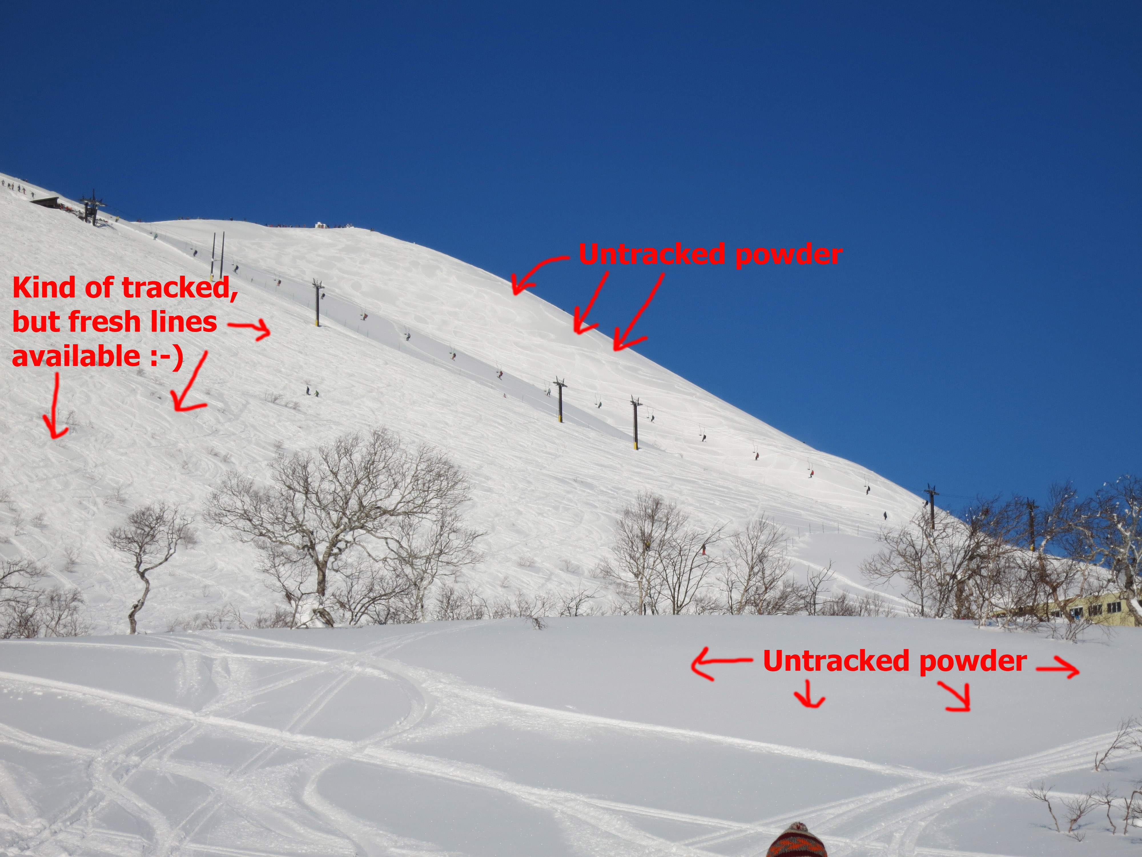 And finally here is an EVEN MORE zoomed in of the "6 days of skiing" on the ski hill. I did not carry my GPS tracker with me all the time, but you get the general idea. Oh, when the top lifts are open, you can ski over to the "Niseko Annupri Kokusai Ski Area" you can see in the very lower left of the picture. I did not carry my GPS tracker over there on the day the top lifts were open, but some of our group went over there (all on one shared lift ticket, no driving required).