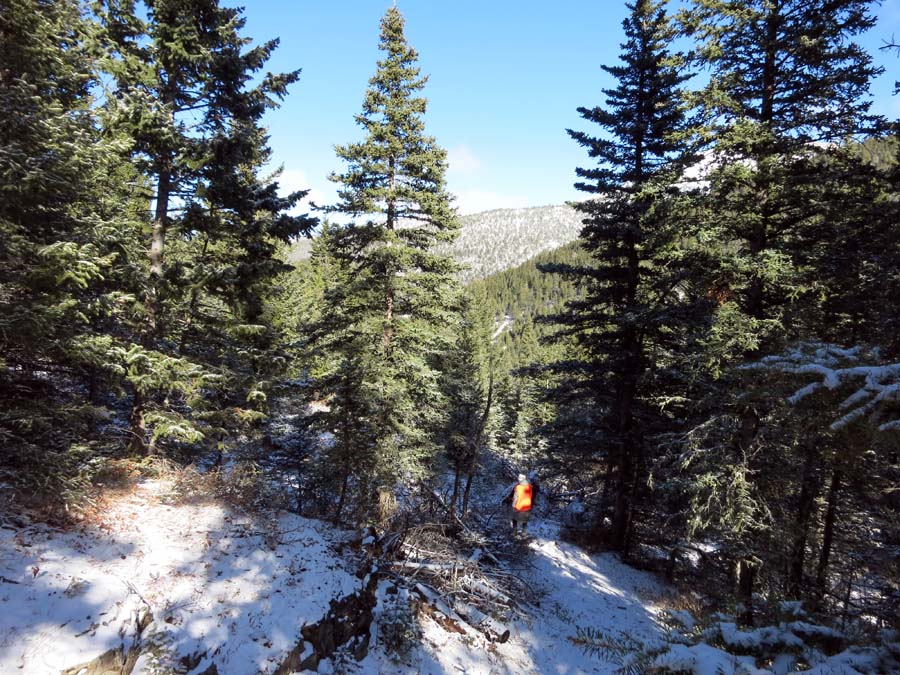 I took Silver Gulch Tr 402. Also notice motorcycles (dirt bikes) are allowed most of the year, but not during hunting season (the time I'm there). Snowmobiles are ALSO allowed (but not during hunting season), and that would be pretty fun out here.