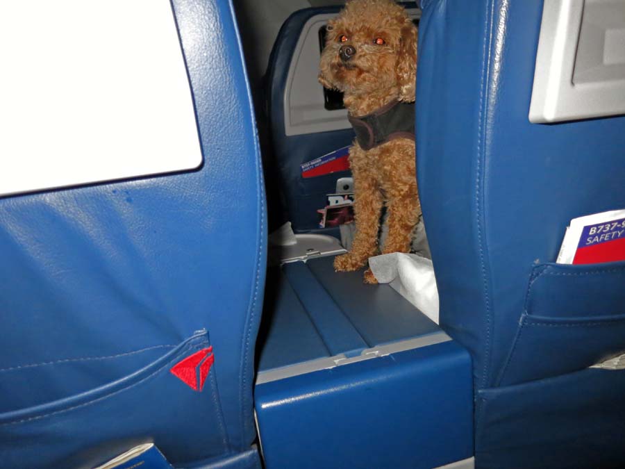 There is ANOTHER dog on our flight directly in front of our row! Hello!