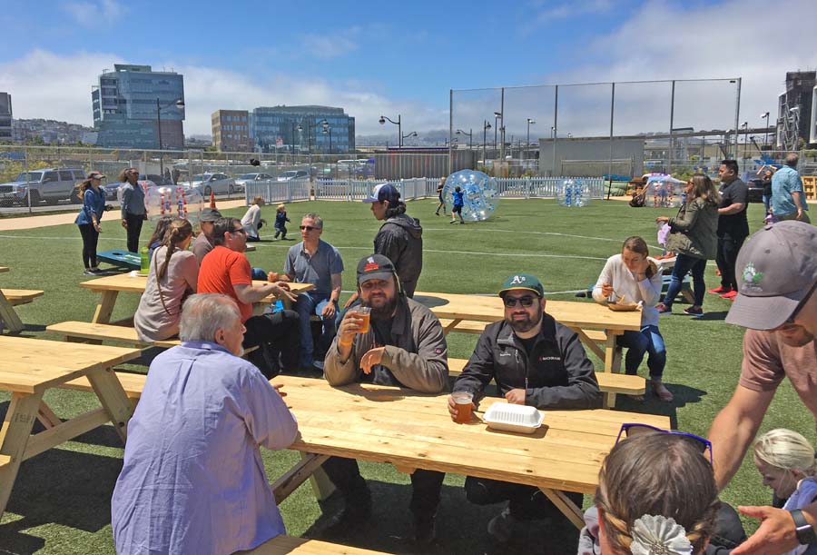 A panorama of Spark Social in San Francisco at the 2018 Backblaze "Family Fun Day".