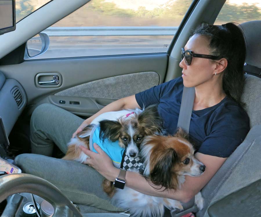On the way home, the dogs were acting needy so Katherine put them in her lap for an hour or two.