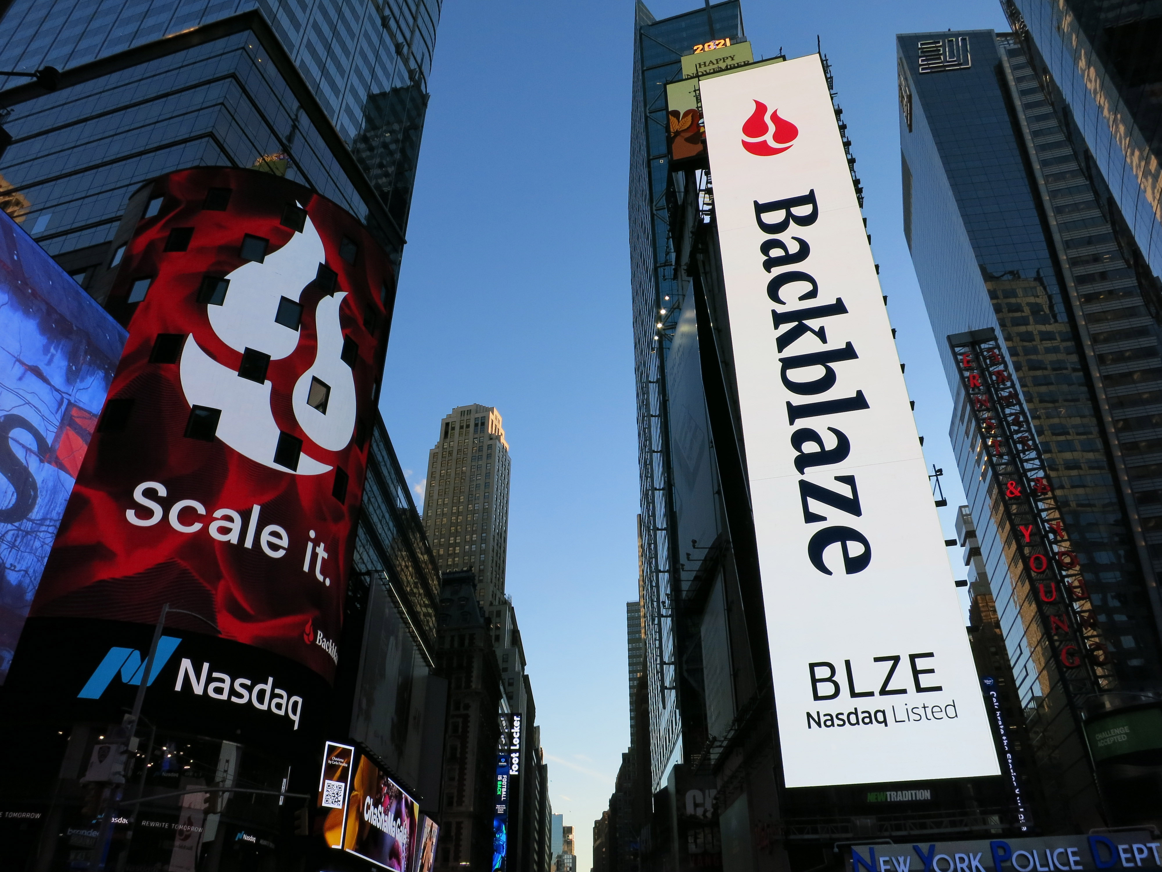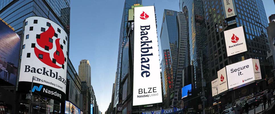 On Thursday, November 11, 2021 Backblaze had it's IPO (Initial Public Offering) and the first shares were traded on NASDAQ around 11am. The trading symbol is BLZE. Brian and Katherine travelled from Austin Texas to New York to watch it occur. On this page is some information surrounding the IPO and some pictures.