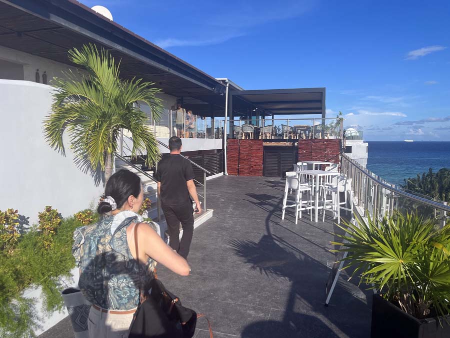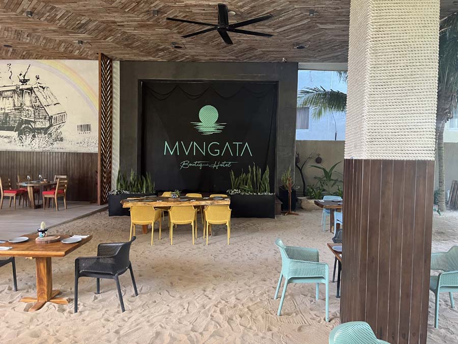 Here we arrive at "Mvngata Hotel and Rooftop Club". We didn't stay at this hotel, but we had lunch at their beachfront restaurant, and later toured the rooftop club area.