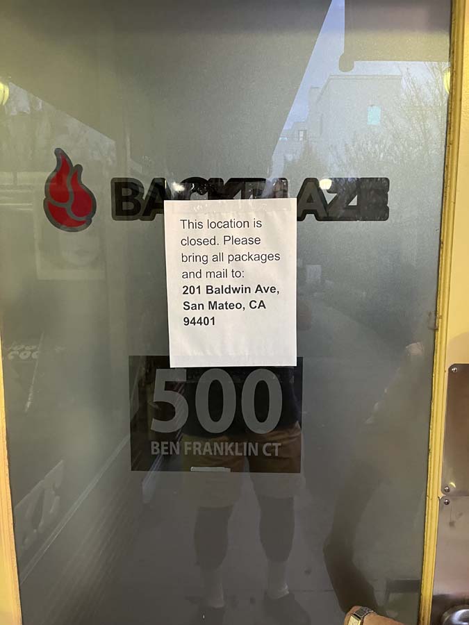I had an extra hour, so I went to the old office (now shuttered) to say hello to Susan Uzunoglu (our next door neighbor at our old address). I took this picture of the old front door of the vacated Backblaze office. The office at 500 Ben Franklin Ct, San Mateo, California lasted Backblaze from when Backblaze moved in on 11/29/2010 through when Backblaze moved entirely out on 12/1/2023. That's 13 years and 2 days. You can see some times and dates here. Now the thing that is amazing here is that Susan's Eurobeauty has been there for 30 years. She was there before we arrived, she watched it all unfold and evolve for 13 years, and her business is still there after Backblaze left. And there was a thing going on the whole time with all of our retail neighbors which is that Backblaze was slowly expanding inside the building. The deal we offered neighboring businesses was we took half their retail space, put up non-structural drywall to separate our businesses, then paid 100% of their rent, give or take. We also paid their electrical bills and things like garbage collection. This was a really symbiotic relationship Backblaze had that was extremely friendly with our neighbors. In return, the neighbors were extremely protective of Backblaze. But the end result was a SUPER fun Winchestor Mystery House type of maze all hidden inside and behind what appeared to be small retail shops in downtown San Mateo. And hidden in this sprawling, crazy office layout was an absolutely astounding 200 Gbit/sec networking connection to the outside world. This was all an accident, but this office represented part of Backblaze's early soul. It represented "scrappy and practical" and not pretentious about office presentation. While hitting hard technically with the networking connection that few companies have even in their datacenters. I loved this office, I enjoyed working there.