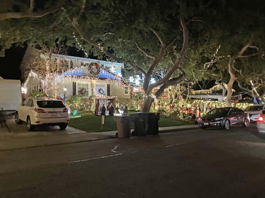 On the way home, we veered off to a neighborhood in Torrance that really goes "all out" on Christmas lights. Here is a Google Map link: https://maps.app.goo.gl/GNvUeUMgrq27e5f27 and the address of the entrance is 23222 Doris Way, Torrance, CA. Below are three example pictures, but it really goes on for several blocks in every direction.